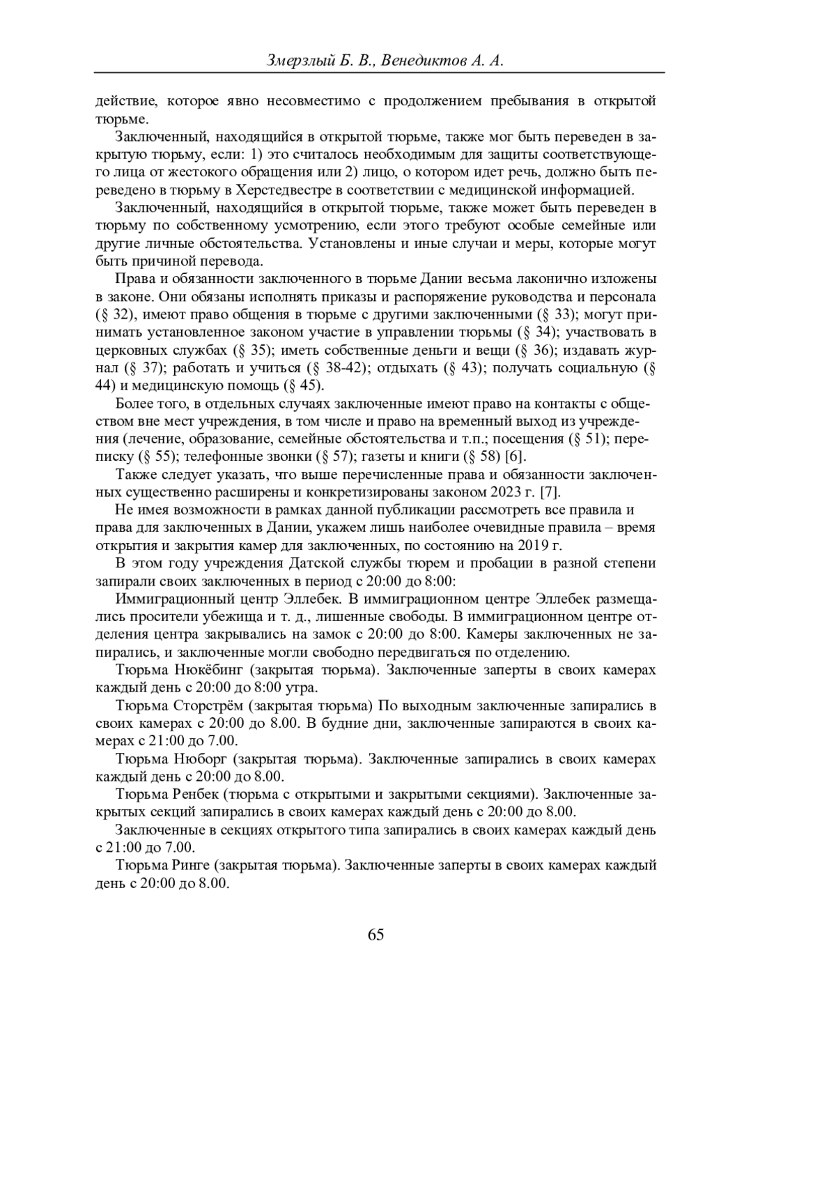 ЗМЕРЗЛЫЙ Б. В., ВЕНЕДИКТОВ А. А. НАЦИОНАЛЬНЫЕ АСПЕКТЫ ОРГАНИЗАЦИИ ДЕЯТЕЛЬНОСТИ ОТКРЫТЫХ ТЮРЕМ (НА ПРИМЕРЕ ДАНИИ) // УЧЕНЫЕ ЗАПИСКИ КРЫМСКОГО ФЕДЕРАЛЬНОГО УНИВЕРСИТЕТА ИМЕНИ В. И. ВЕРНАДСКОГО. ЮРИДИЧЕСКИЕ НАУКИ. 2025. ТОМ 11. №2
