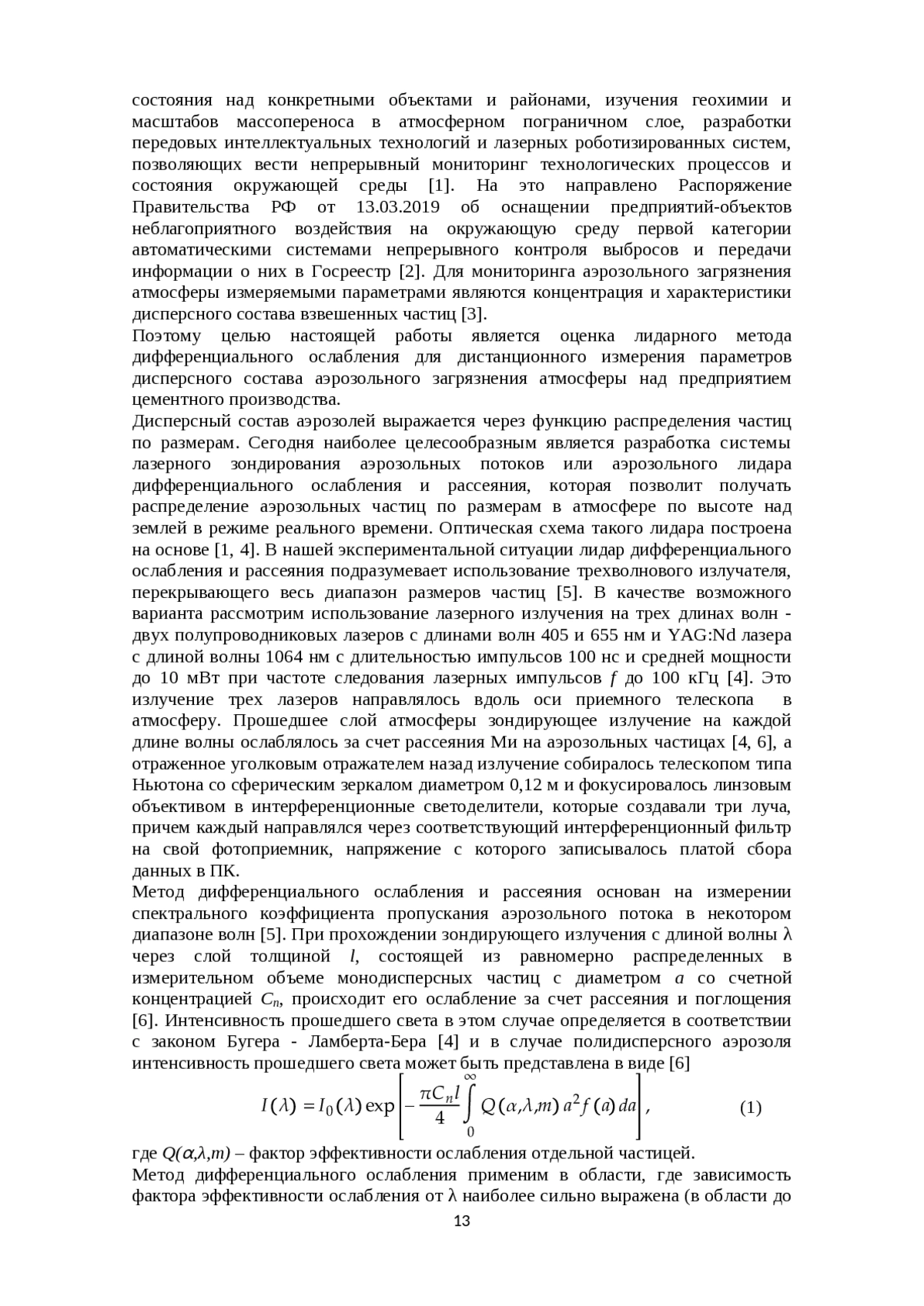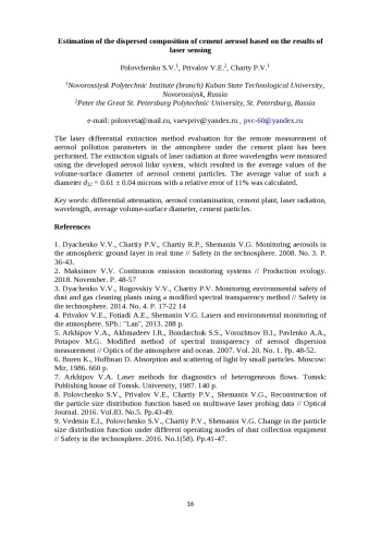 Статья: Оценка дисперсного состава цементного аэрозоля по результатам лазерного зондирования (2024)