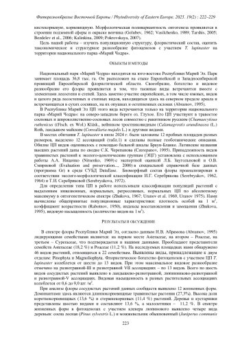 ПОЛЯНСКАЯ Т.А. СОСТОЯНИЕ ЦЕНОПОПУЛЯЦИЙ TRIFOLIUM LUPINASTER (FABACEAE) В НАЦИОНАЛЬНОМ ПАРКЕ «МАРИЙ ЧОДРА» // ФИТОРАЗНООБРАЗИЕ ВОСТОЧНОЙ ЕВРОПЫ. 2025. Т. 19 № 2
