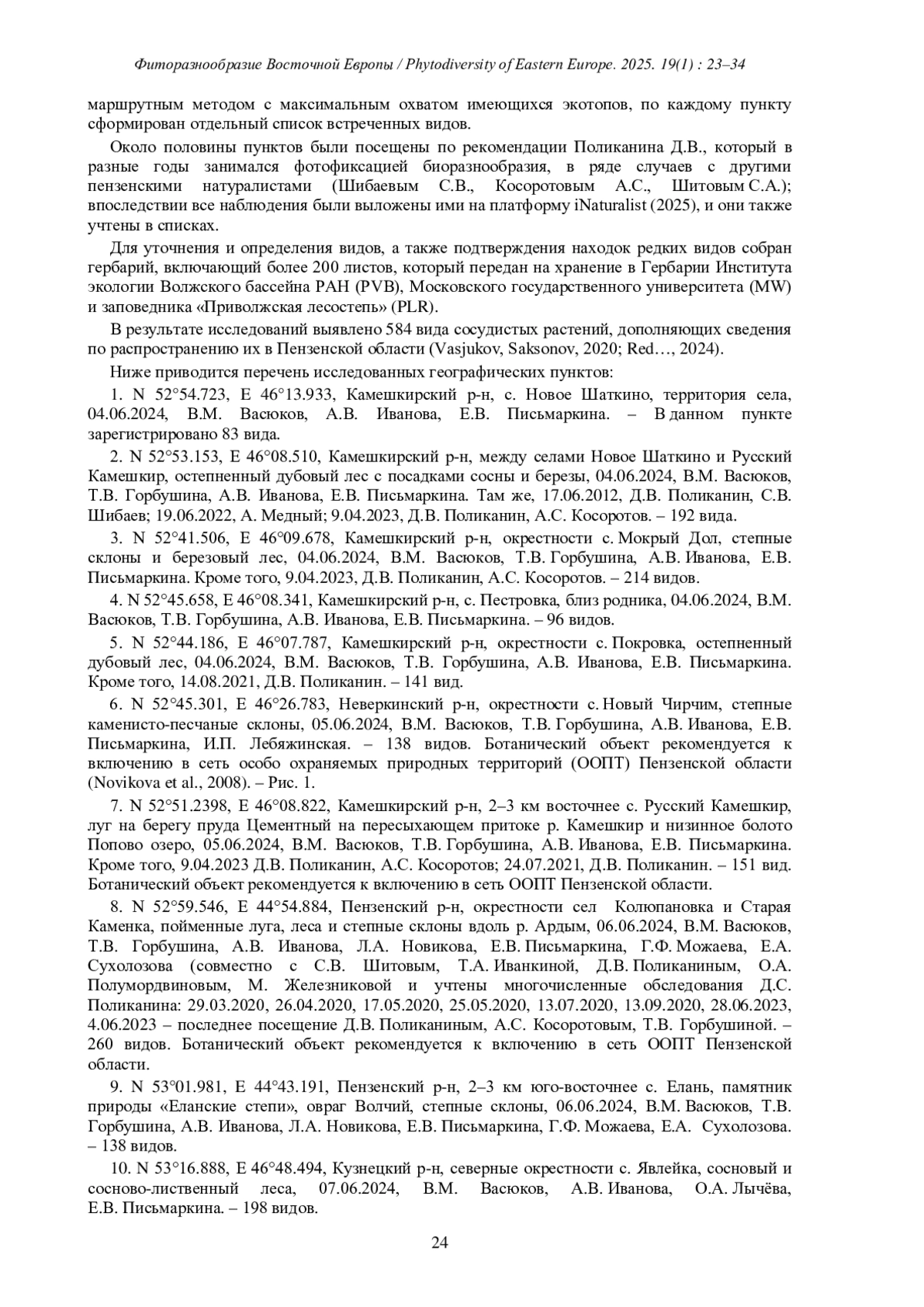 6. [Vasjukov, Saksonov] Васюков В.М., Саксонов С.В. 2020. Конспект флоры Пензенской области. Сер. Флора Волжского бассейна. Т. IV. Тольятти. 211 с. EDN: YDCQEK