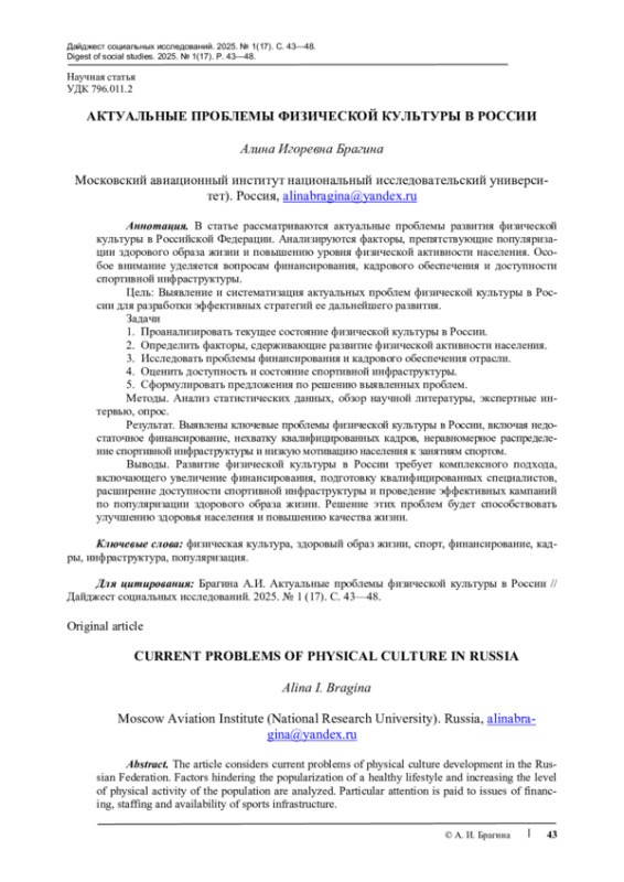 Цель: Выявление и систематизация актуальных проблем физической культуры в России для разработки эффективных стратегий ее дальнейшего развития.