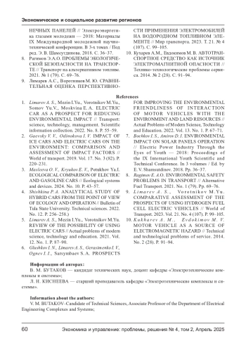 1. Лимарев А.С., Мезин И. Ю., Воротников М. Ю., Сомова Ю. В., Москвина Е. А. ЭЛЕКТРОМОБИЛЬ КАК ПЕРСПЕКТИВА СНИЖЕНИЯ ВОЗДЕЙСТВИЯ НА ОКРУЖАЮЩУЮ СРЕДУ // Транспорт: наука, техника, управление. Научный информационный сборник. 2022. № 8. С. 55-59. EDN: VOAYHK