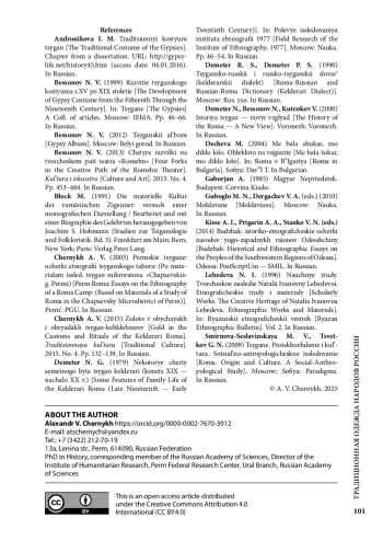 1. Андроникова И. М. Традиционный костюм цыган [глава из дис.]. URL: http://gypsy-life.net/history45.htm (дата обращения: 04.01.2016).