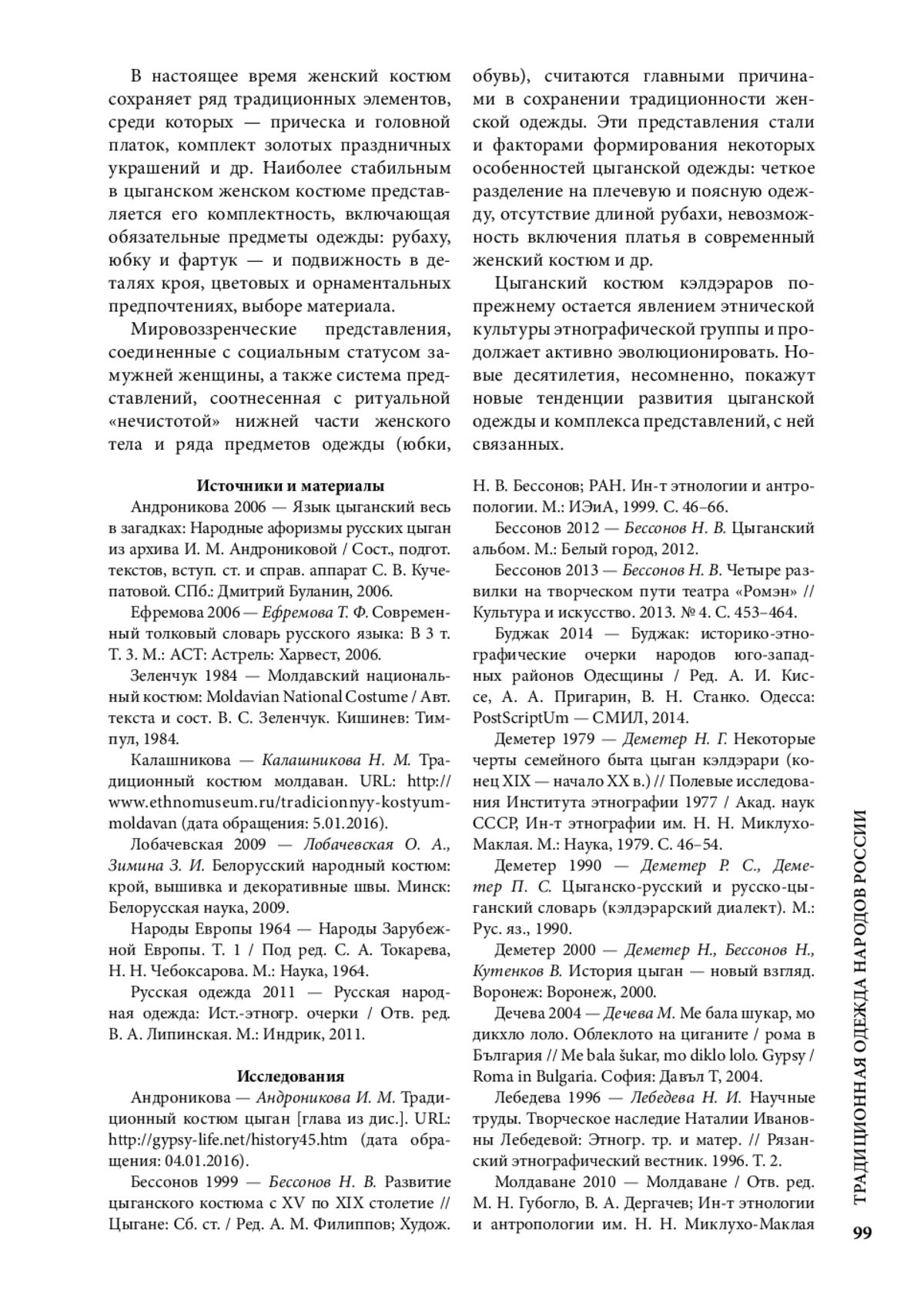 2. Бессонов Н. В. Развитие цыганского костюма с ХV по ХIХ столетие // Цыгане: Сб. ст. / Ред. А. М. Филиппов; Худож. Н. В. Бессонов; РАН. Ин-т этнологии и антропологии. М.: ИЭиА, 1999. С. 46-66.