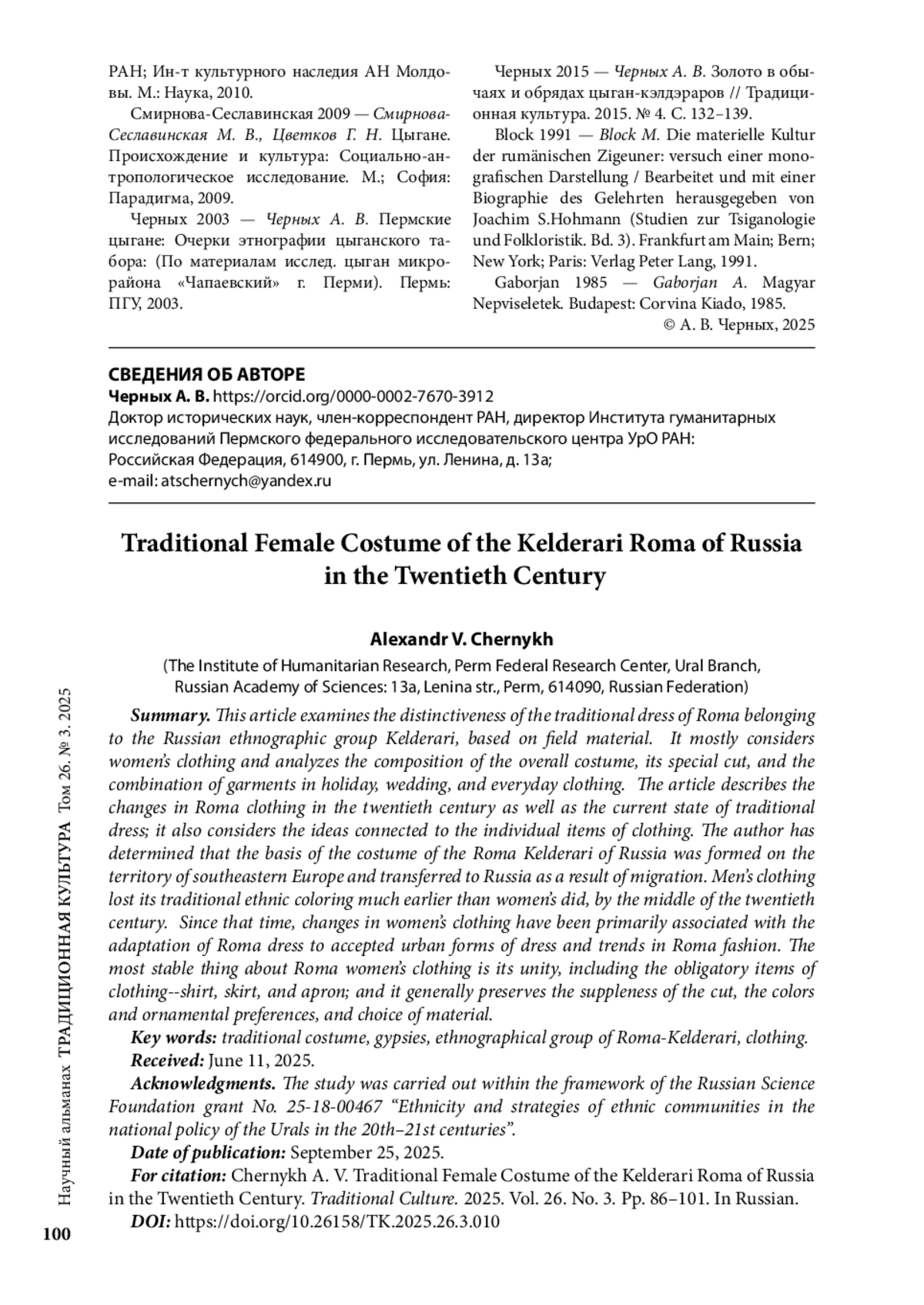14. Черных А. В. Золото в обычаях и обрядах цыган-кэлдэраров // Традиционная культура. 2015. № 4. С. 132-139.