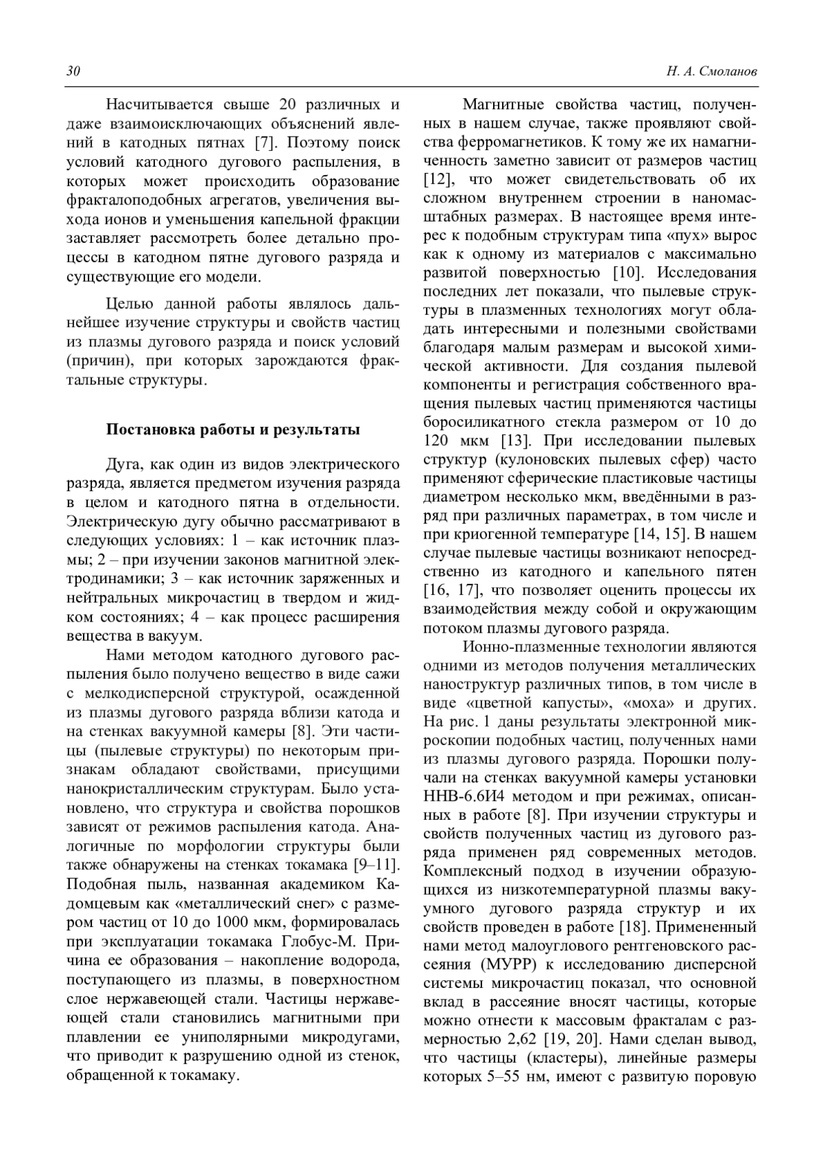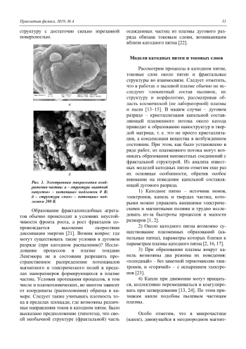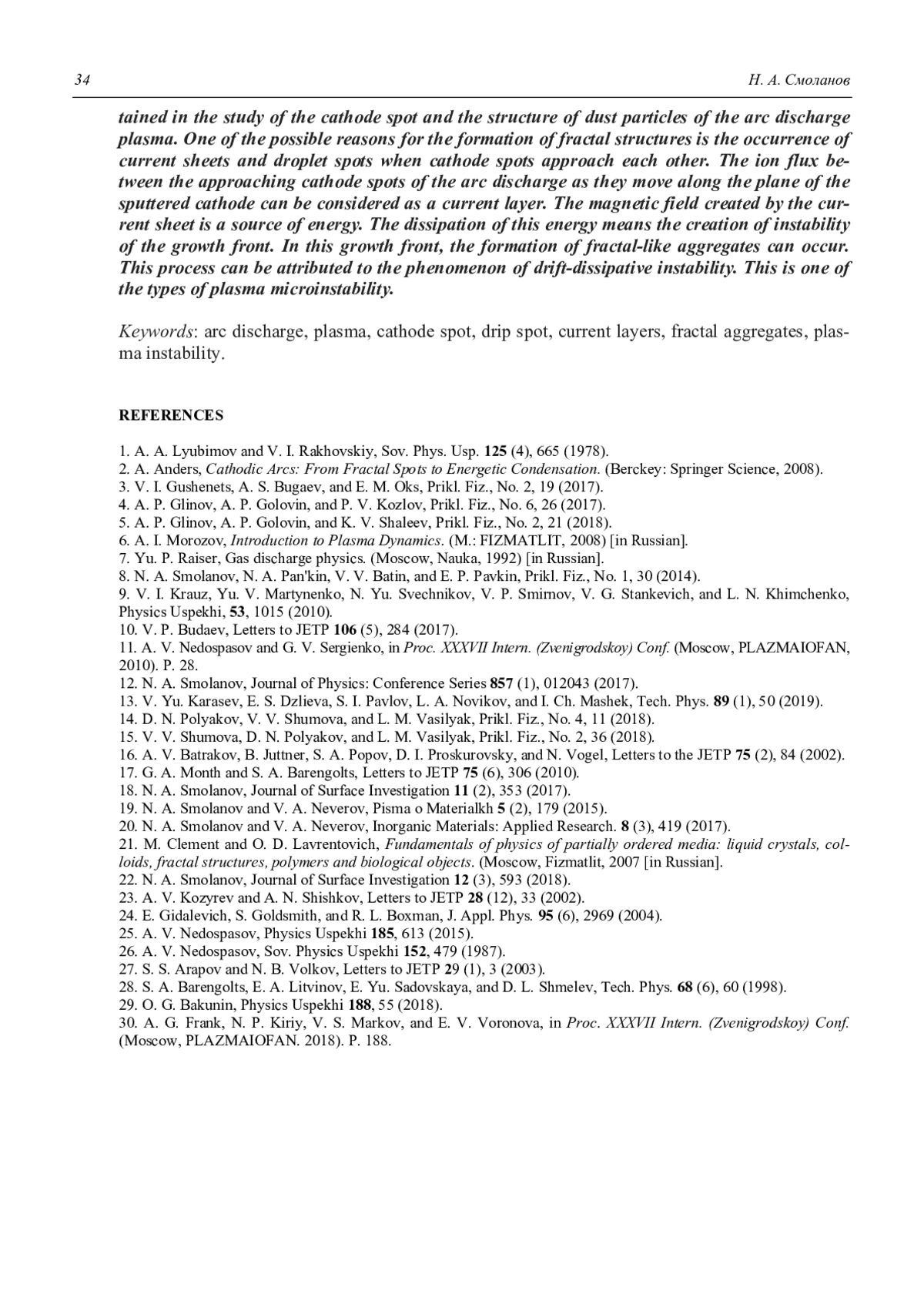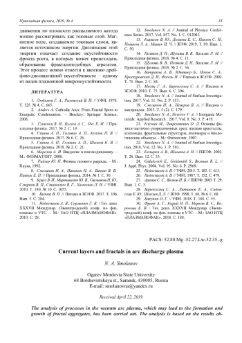 Смоланов Н. А. Токовые слои и фракталоподобные агрегаты в прикатодной плазме дугового разряда 29
