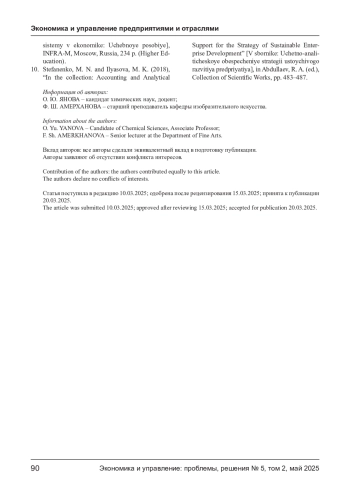 10. Стефаненко М. Н., Ильясова М. К. В сборнике: Учетно-аналитическое обеспечение стратегии устойчивого развития предприятия. Сборник научных трудов / Под общей редакцией Р. А. Абдуллаева. - 2018. - С. 483-487.