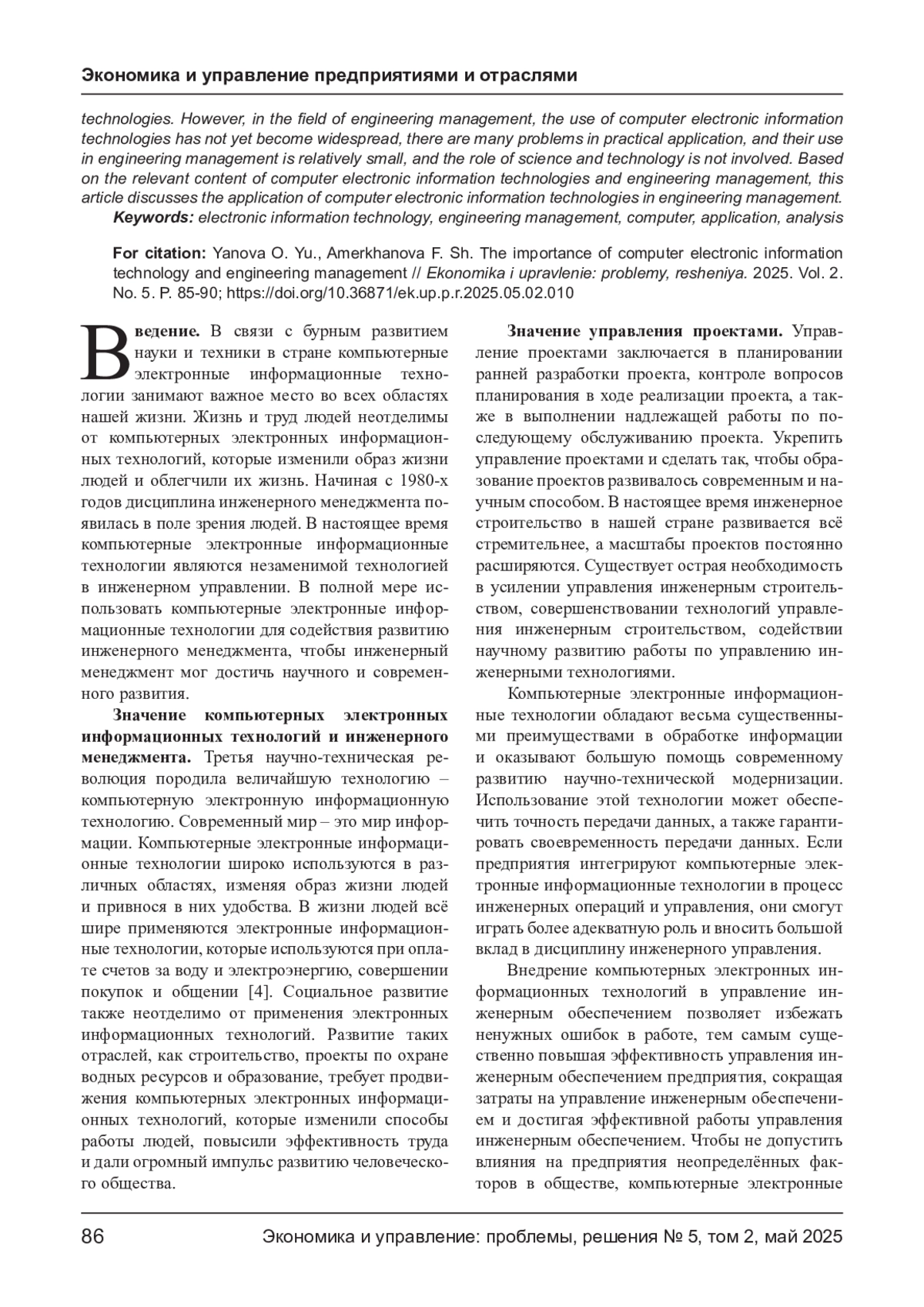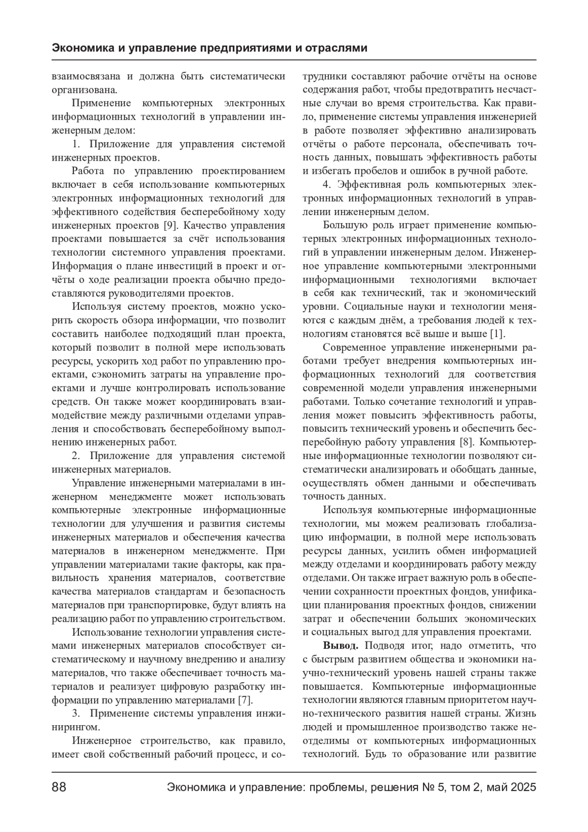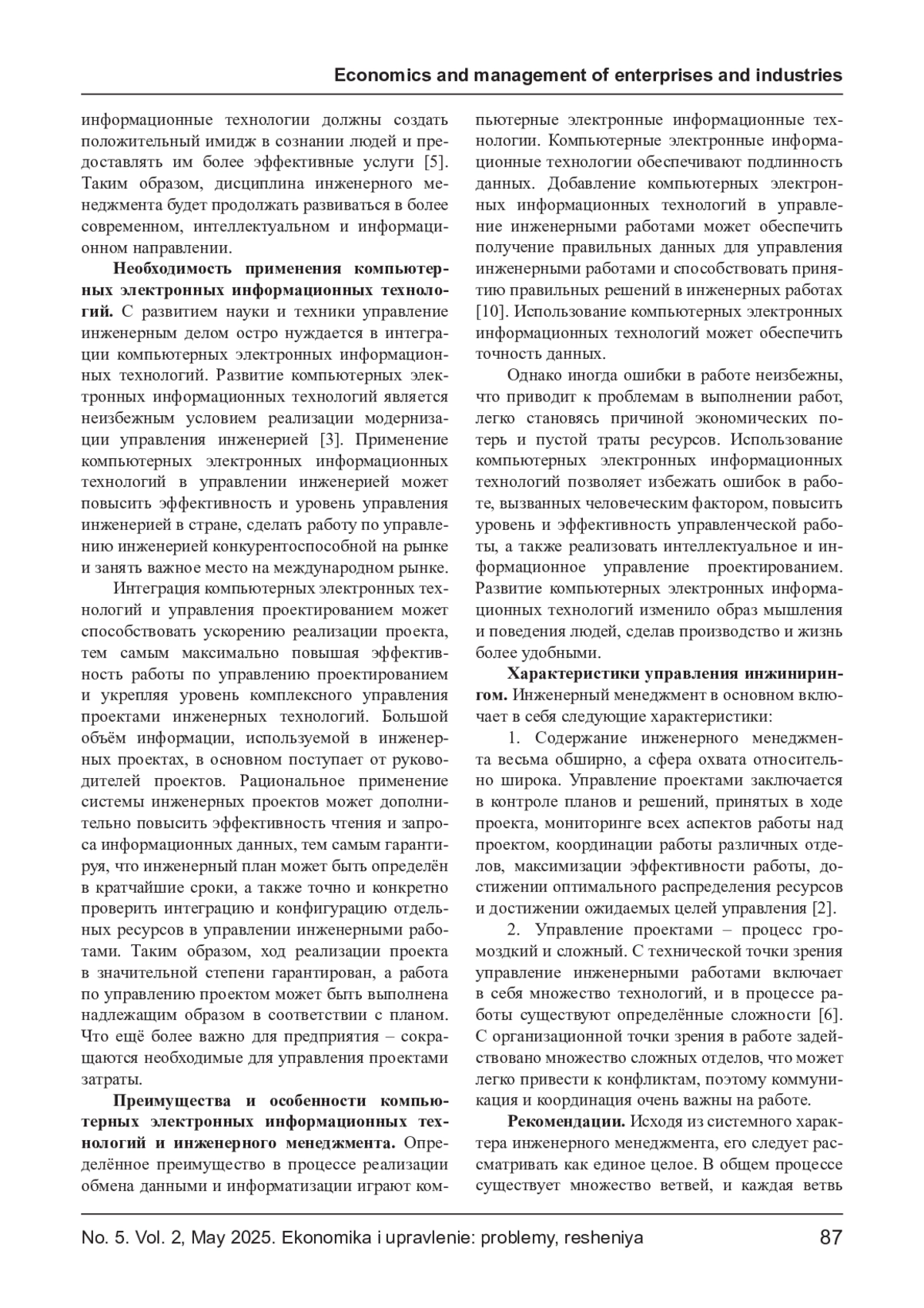 С быстрым развитием экономики и общества уровень науки и техники в стране стремительно развивается, особенно заметно развитие компьютерных электронных информационных технологий. Широко используются компьютерные электронные информационные технологии. Они необходимы во всех сферах жизни страны, а производство и жизнь людей неотделимы от компьютерных электронных информационных технологий. Однако в области управления инженерией применение компьютерных электронных информационных технологий пока не получило широкого распространения, существует много проблем в практическом применении, а их применение в работе по управлению инженерией относительно невелико, а роль науки и техники не задействована. В данной статье на основе соответствующего содержания компьютерных электронных информационных технологий и инженерного менеджмента обсуждается применение компьютерных электронных информационных технологий в инженерном менеджменте.