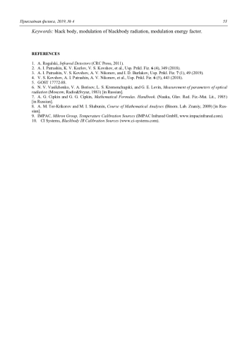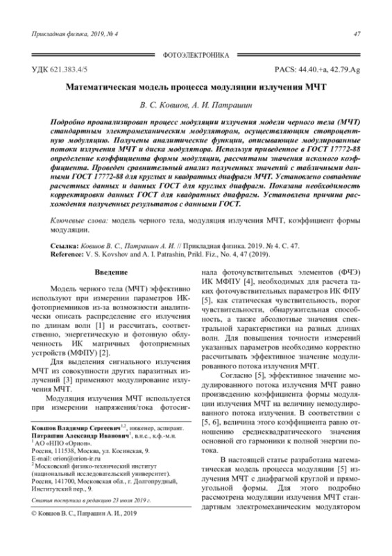 Ключевые фразы: модель черного тела, модуляция излучения МЧТ, коэффициент формы модуляции