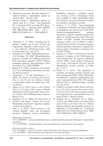8. Исакиева З. С. Социально-демографические проблемы чеченцев и ингушей, депортированных в Казахстан и Среднюю Азию (1944- 1949 гг.) // Современная научная мысль. - 2022. - № 4. - URL: https://cyberleninka.ru/article/n/sotsialno-demograficheskie-problemychechentsev-i-ingushey-deportirovannyh-vkazahstan-i-srednyuyu-aziyu-1944-1949-gg. EDN: KELZHG
