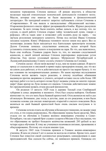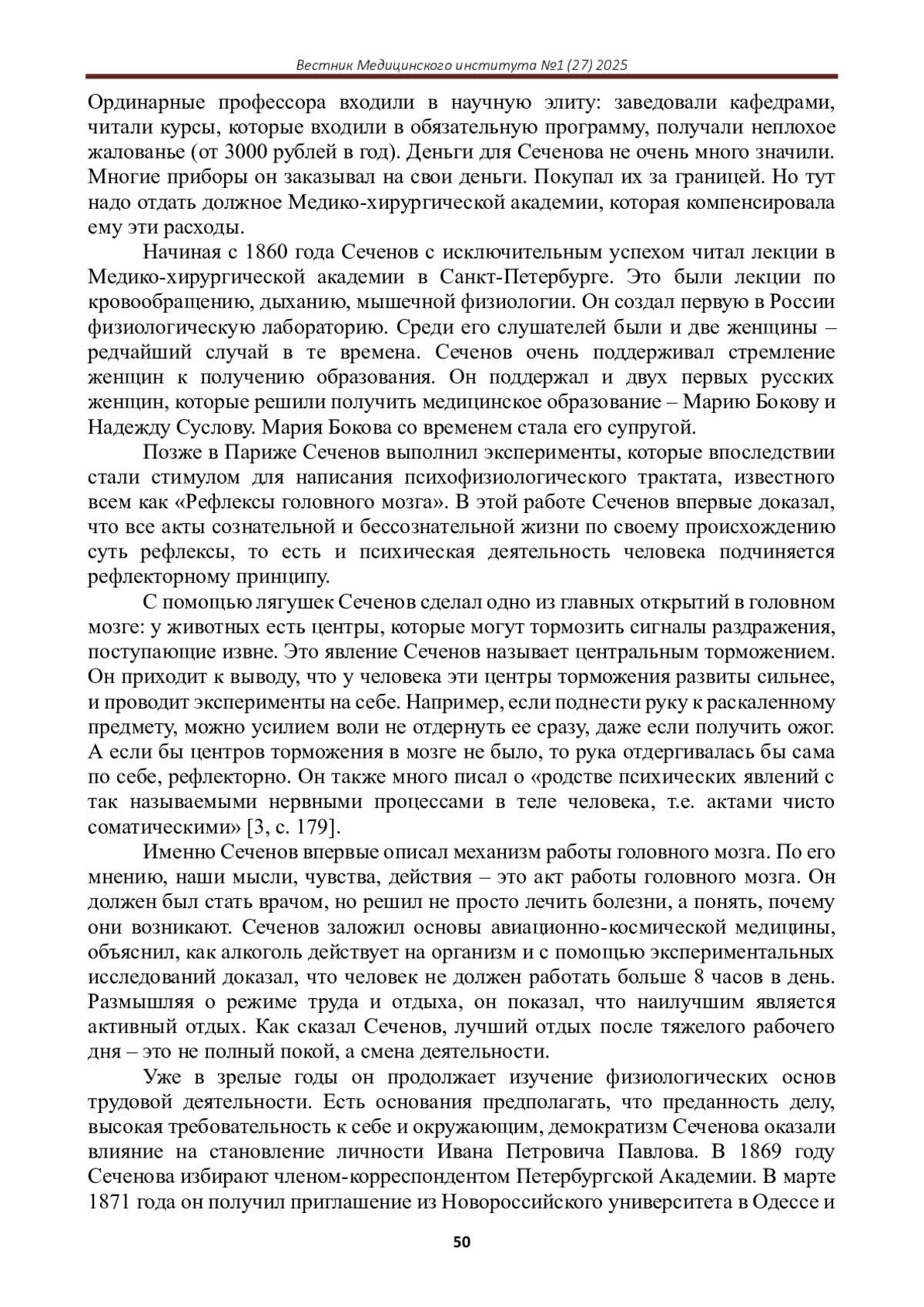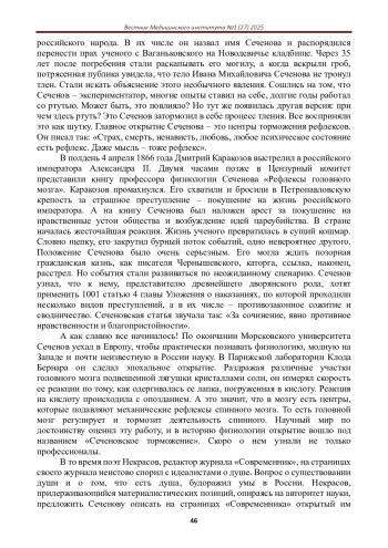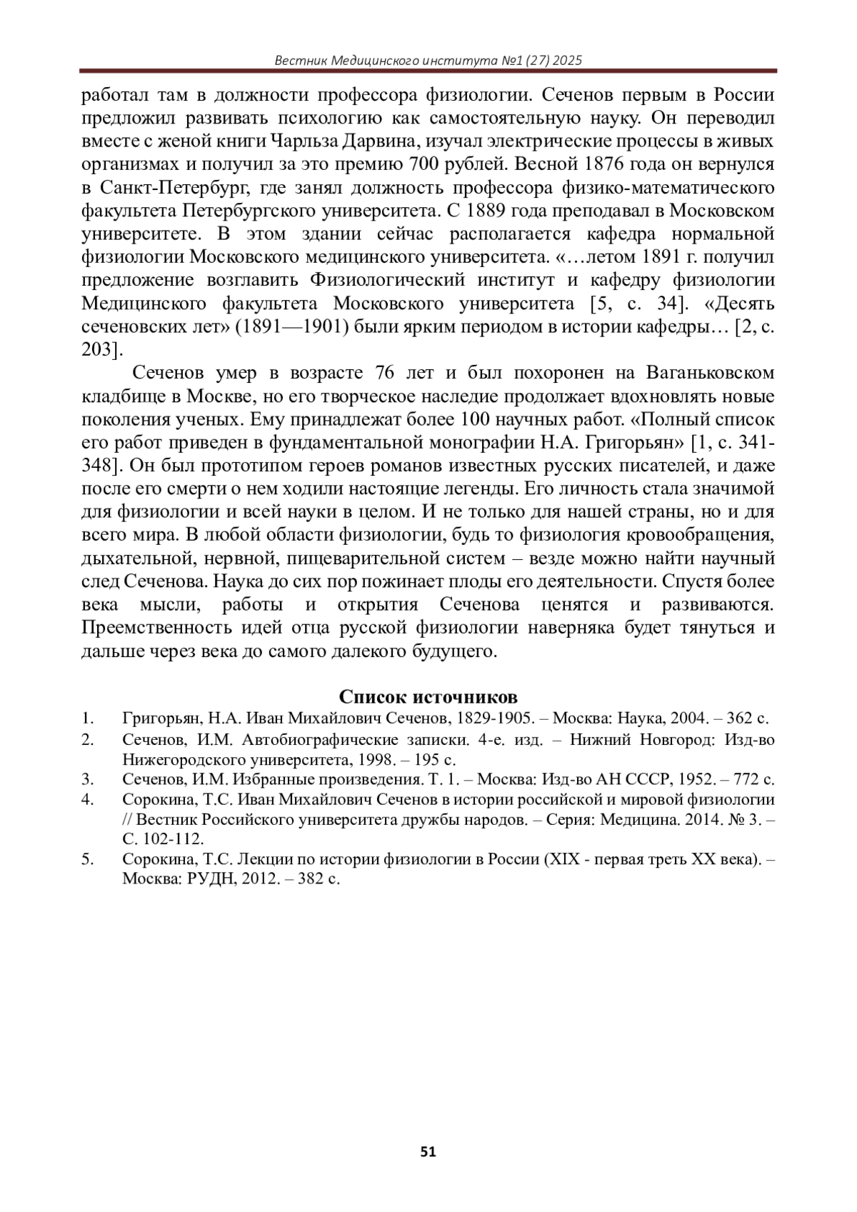 4. Сорокина, Т.С. Иван Михайлович Сеченов в истории российской и мировой физиологии // Вестник Российского университета дружбы народов. - Серия: Медицина. 2014. № 3. - С. 102-112.