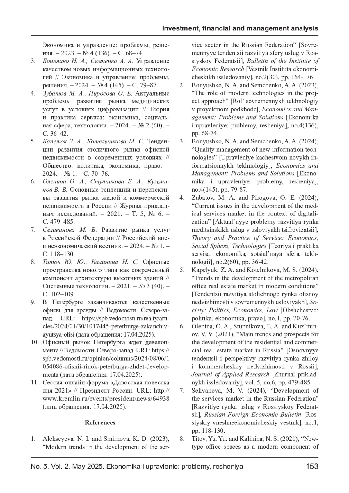 7. Селиванова М. В. Развитие рынка услуг в Российской Федерации // Российский внешнеэкономический вестник. - 2024. - № 1. - С. 118-130. EDN: STTDVA