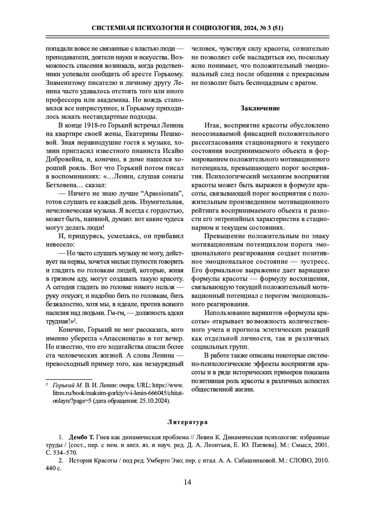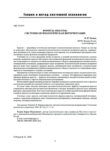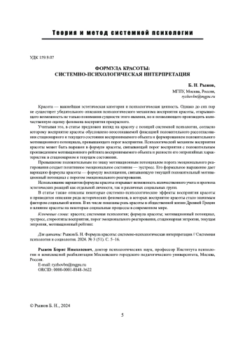 Статья: ФОРМУЛА КРАСОТЫ: СИСТЕМНО-ПСИХОЛОГИЧЕСКАЯ ИНТЕРПРЕТАЦИЯ (2024)