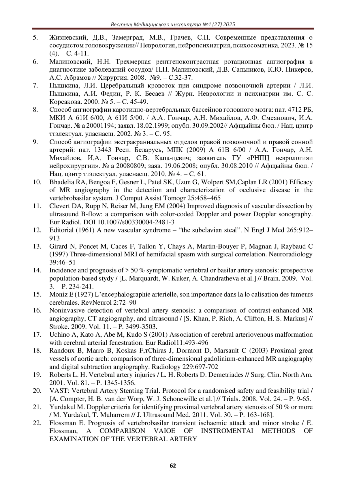 2. Верещагин, Н.В. Патология вертебро-базилярной системы и нарушения мозгового кровообращения / Н.В. Верещагин. - Москва: Медицина, 1980. - 312 с.