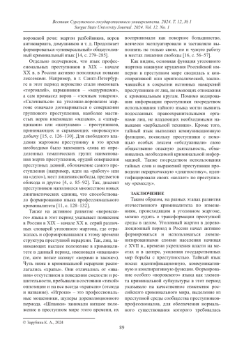 7. Коротеева Н. А. Происхождение уголовного жаргона в России и меры борьбы с его распространением в современном обществе // Отечественная юриспруденция. 2020. № 5. С. 31-35.