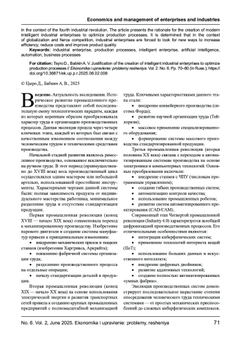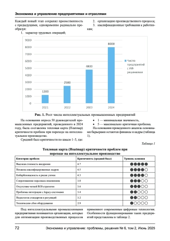 Современный этап технологического развития мировой промышленности характеризуется фундаментальной трансформацией традиционных производственных систем, обусловленной стремительным развитием цифровых технологий и необходимостью решения новых экономических вызовов. Появление интеллектуальных промышленных предприятий представляет собой закономерный ответ на совокупность факторов, определяющих конкурентоспособность промышленного производства в условиях четвертой промышленной революции. В статье представлено обоснование создания современных интеллектуальных промышленных предприятий для оптимизации производственных процессов. Определено, что в условиях глобализации и жесткой конкурентной борьбы промышленные предприятия вынуждены искать новые пути повышения эффективности, снижения затрат и улучшения качества продукции.