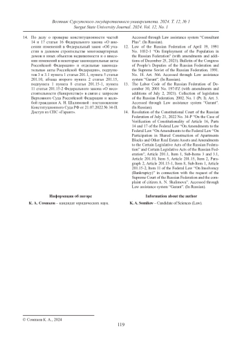 14. По делу о проверке конституционности частей 14 и 17 статьи 16 Федерального закона «О внесении изменений в Федеральный закон «Об участии в долевом строительстве многоквартирных домов и иных объектов недвижимости и о внесении изменений в некоторые законодательные акты Российской Федерации» и отдельные законодательные акты Российской Федерации», подпунктов 3 и 3.1 пункта 1 статьи 201.1, пункта 5 статьи 201.10, абзаца второго пункта 2 статьи 201.15, подпункта 1 пункта 8 статьи 201.15-1, пункта 11 статьи 201.15-2 Федерального закона «О несостоятельности (банкротстве)» в связи с запросом Верховного Суда Российской Федерации и жалобой гражданки А. Н. Шалимовой : постановление Конституционного Суда РФ от 21.07.2022 № 34-П. Доступ из СПС «Гарант».