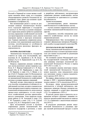 Ключевые фразы: риск, экономическая безопасность, хозяйственная система, НЕОПРЕДЕЛЕННОСТЬ, риски экономической устойчивости, риски перспективного развития, риски социального благополучия, пандемия, РИСК-МЕНЕДЖМЕНТ