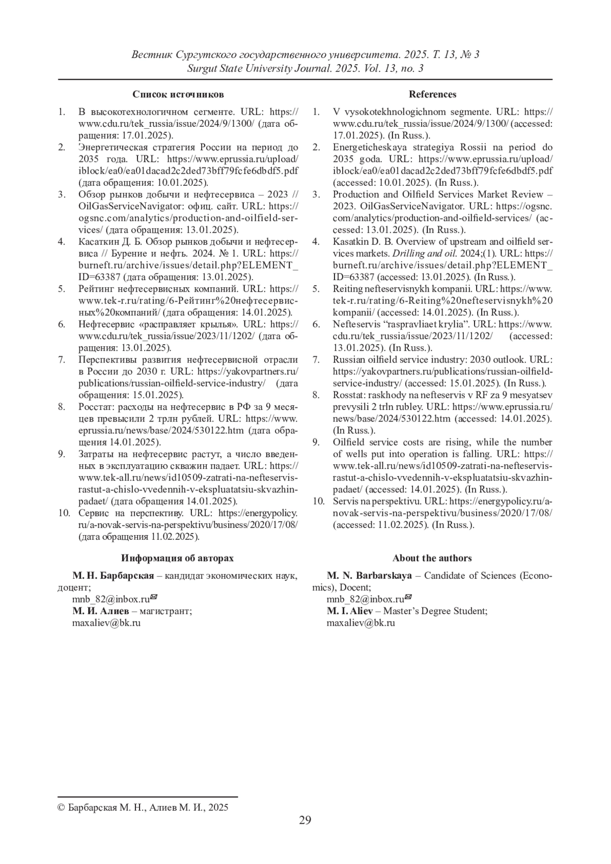 6. Нефтесервис «расправляет крылья». URL: https://www.cdu.ru/tek_russia/issue/2023/11/1202 (дата обращения: 13.01.2025).