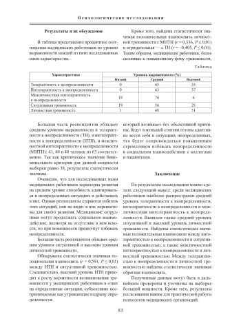 Статья: ТРЕВОЖНОСТЬ И ТОЛЕРАНТНОСТЬ К НЕОПРЕДЕЛЕННОСТИ МЕДИЦИНСКИХ РАБОТНИКОВ (2024)