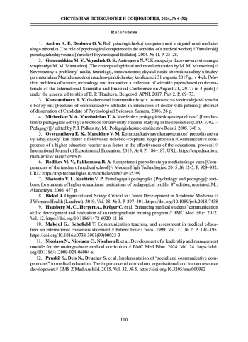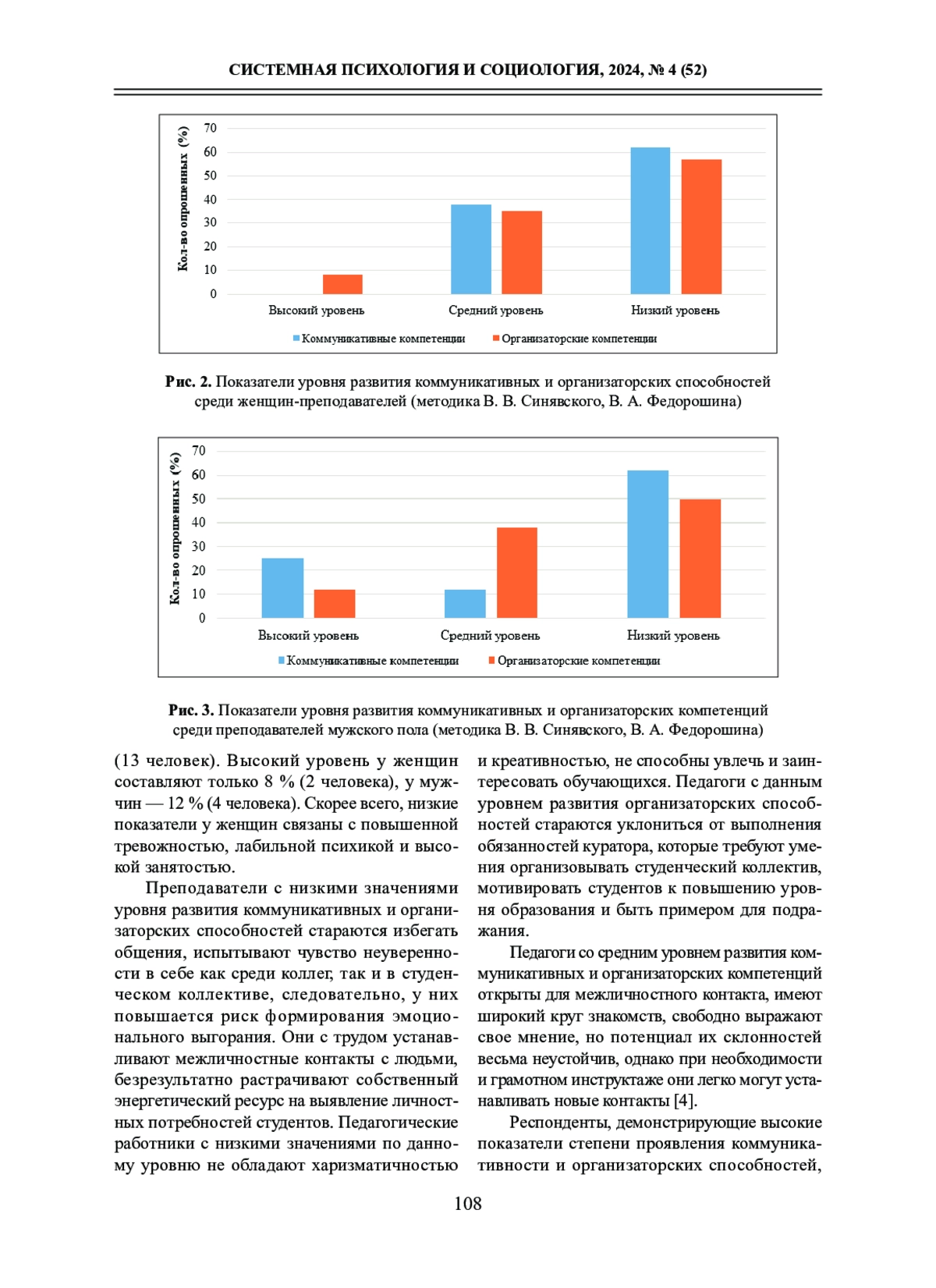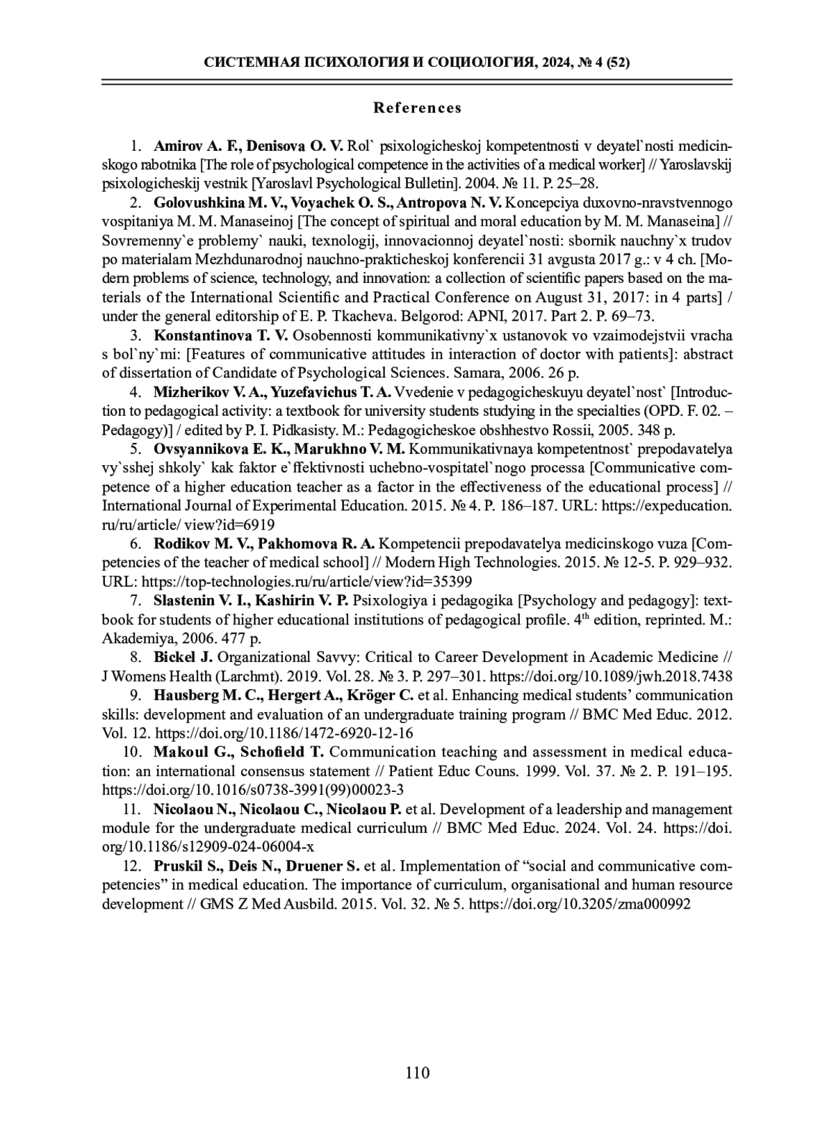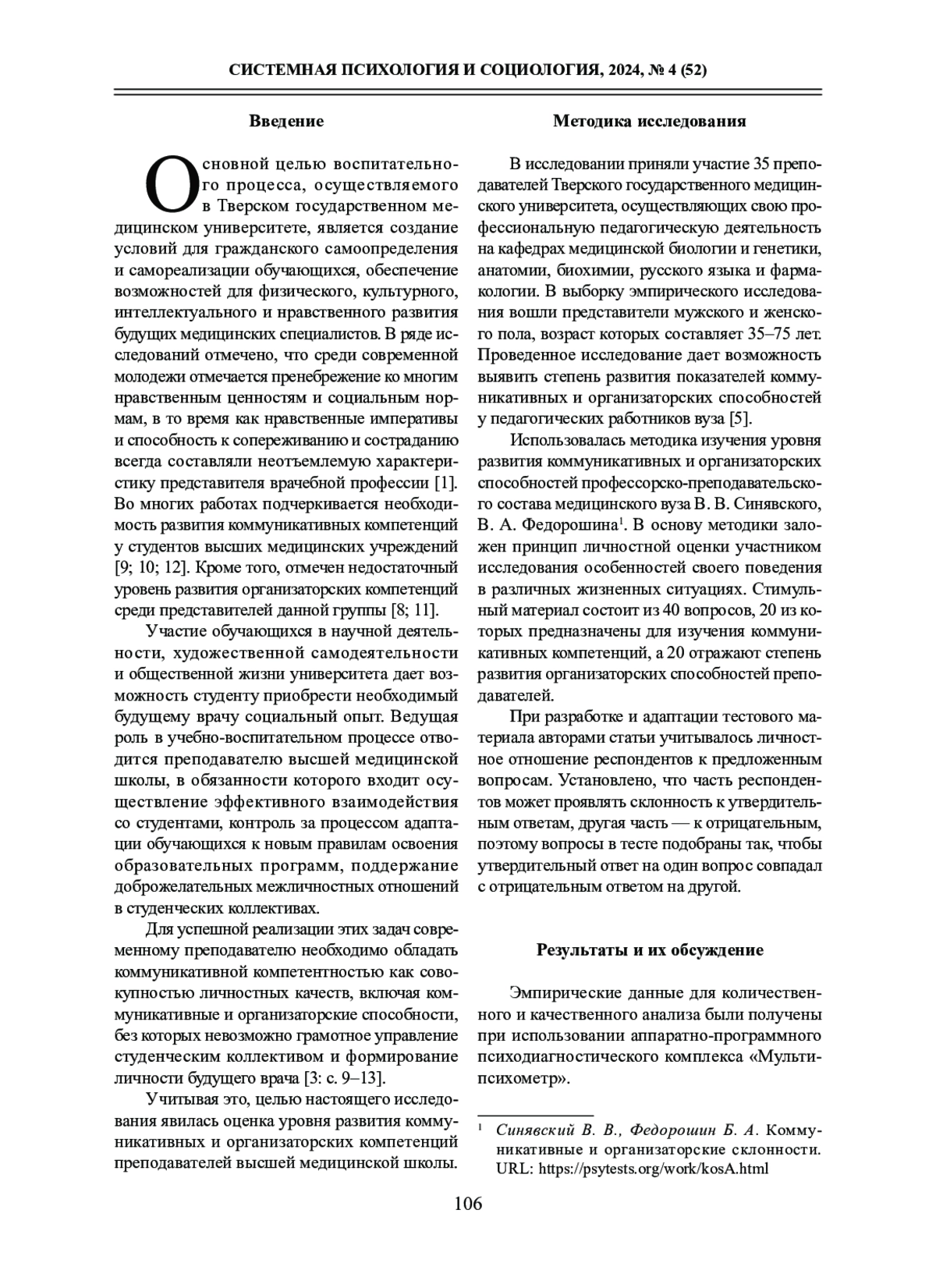 ФИЛИППЧЕНКОВА С. И., ИСАКОВА Н. В. КОММУНИКАТИВНЫЕ И ОРГАНИЗАТОРСКИЕ КОМПЕТЕНЦИИ ПРЕПОДАВАТЕЛЯ ВЫСШЕЙ МЕДИЦИНСКОЙ ШКОЛЫ КАК СПОСОБ ВОСПИТАТЕЛЬНОГО ВОЗДЕЙСТВИЯ НА СТУДЕНТА // СИСТЕМНАЯ ПСИХОЛОГИЯ И СОЦИОЛОГИЯ. 2024. № 4 (52)