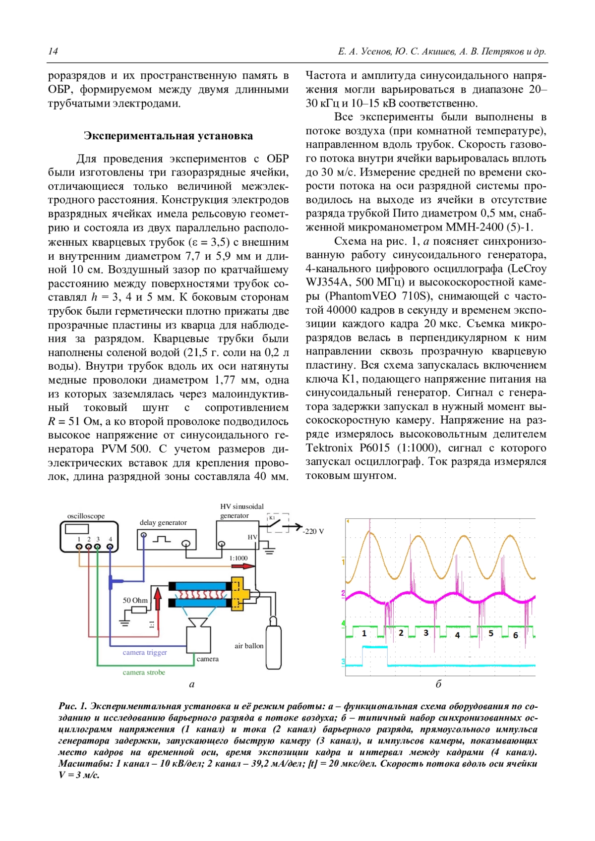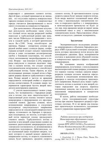 Усенов Е. А., Акишев Ю. С., Петряков А. В., Рамазанов Т. С., Габдуллин М. Т., Аширбек А., Акильдинова A. К. Эффект «памяти» микроразрядов барьерного разряда в потоке воздуха 12