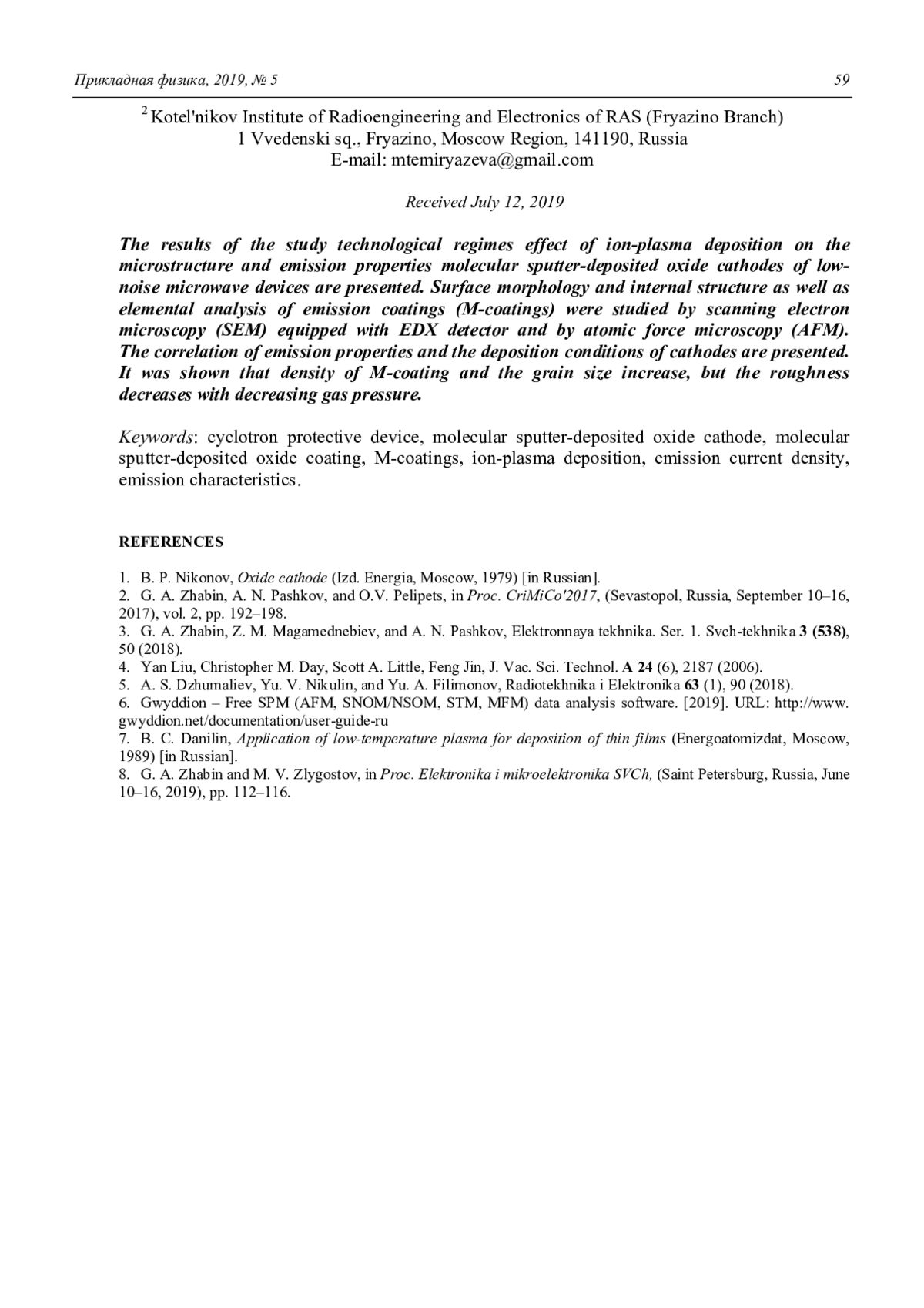 G. A. Zhabin, D. Yu. Arkhipov, and M. P. Temiryazeva The effect of deposition regimes on the microstructure and emission properties of molecular sputter-deposited oxide 54