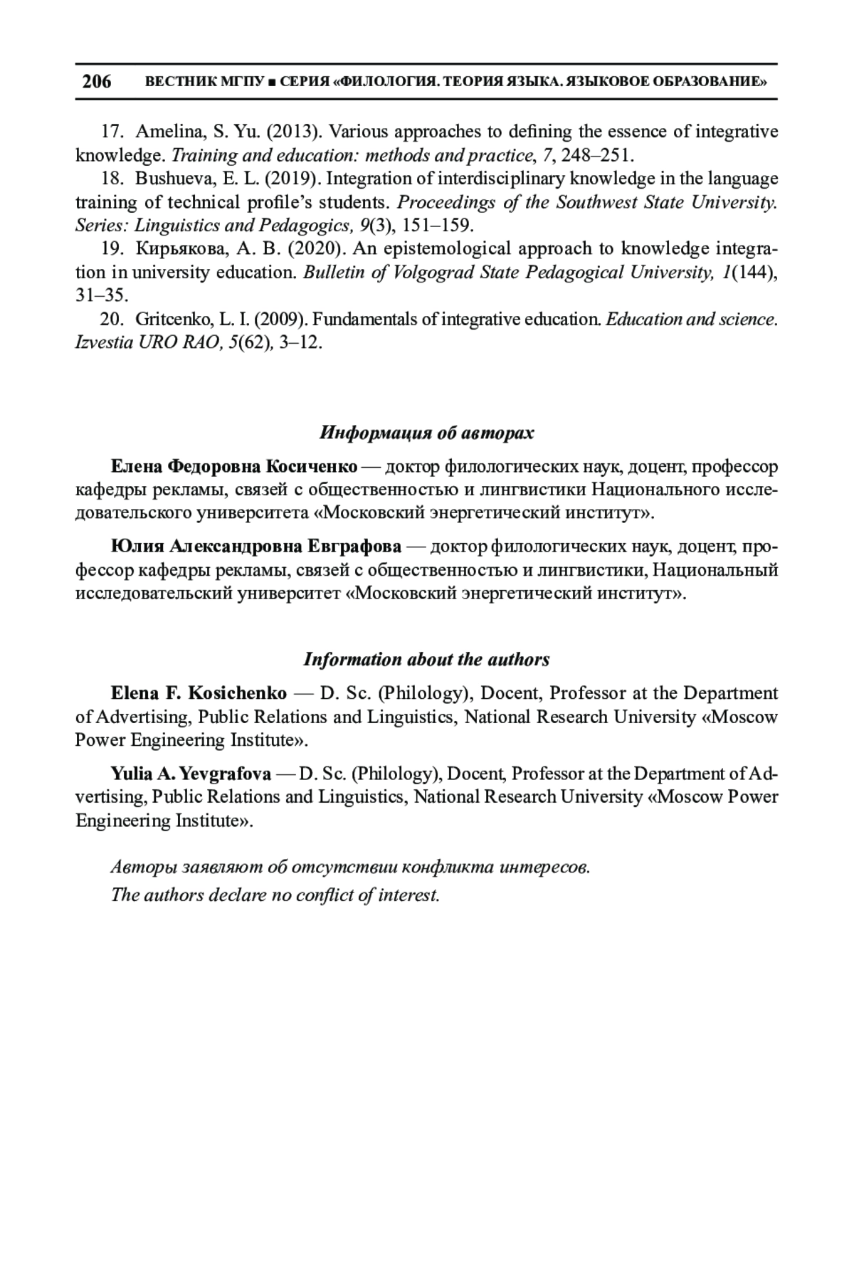 Журнал: ВЕСТНИК МГПУ. СЕРИЯ: ФИЛОЛОГИЯ. ТЕОРИЯ ЯЗЫКА. ЯЗЫКОВОЕ ОБРАЗОВАНИЕ