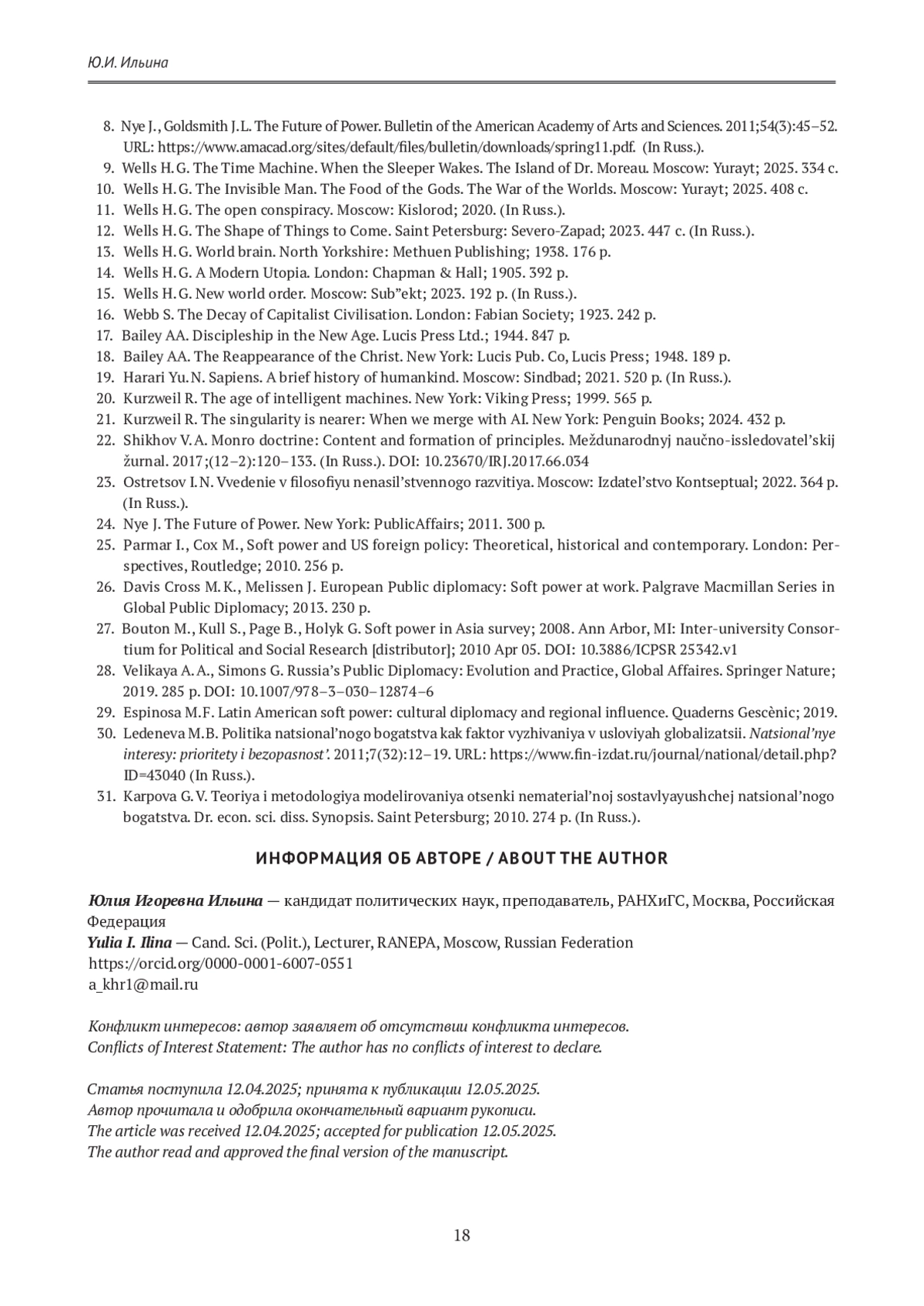 15. Уэллс Г. Новый Мировой Порядок. Москва: Субъект; 2023. 192 с.