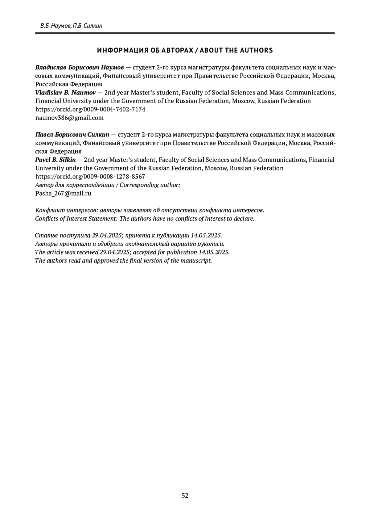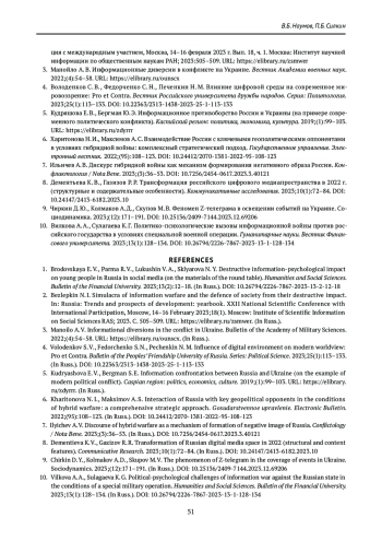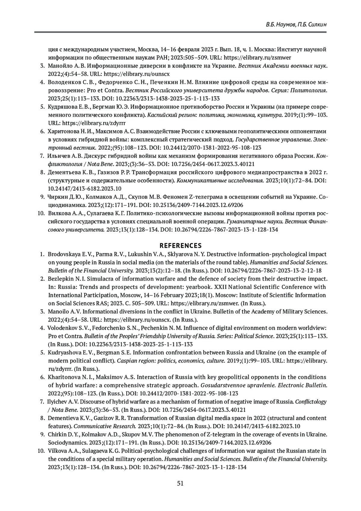7. Ильичев А. В. Дискурс гибридной войны как механизм формирования негативного образа России. Конфликтология / Nota Bene. 2023;(3):36-53. https://doi.org/10.7256/2454-0617.2023.3.40121