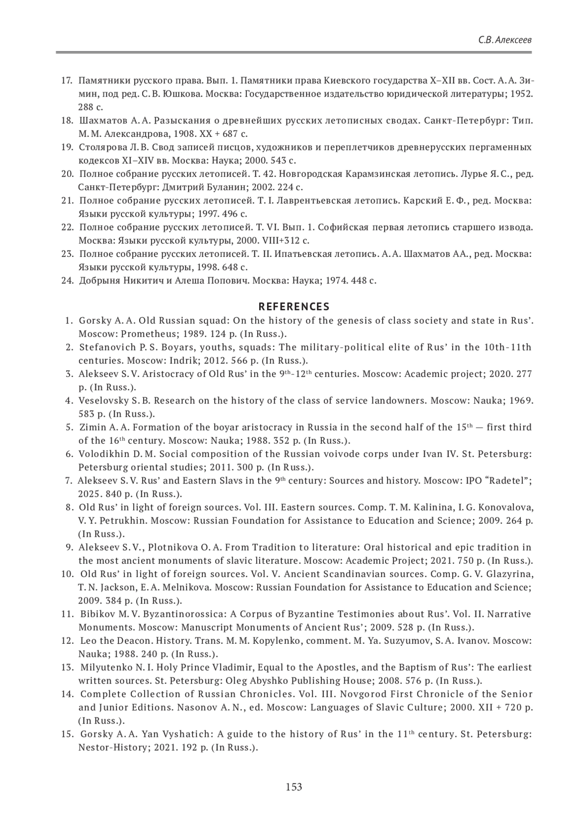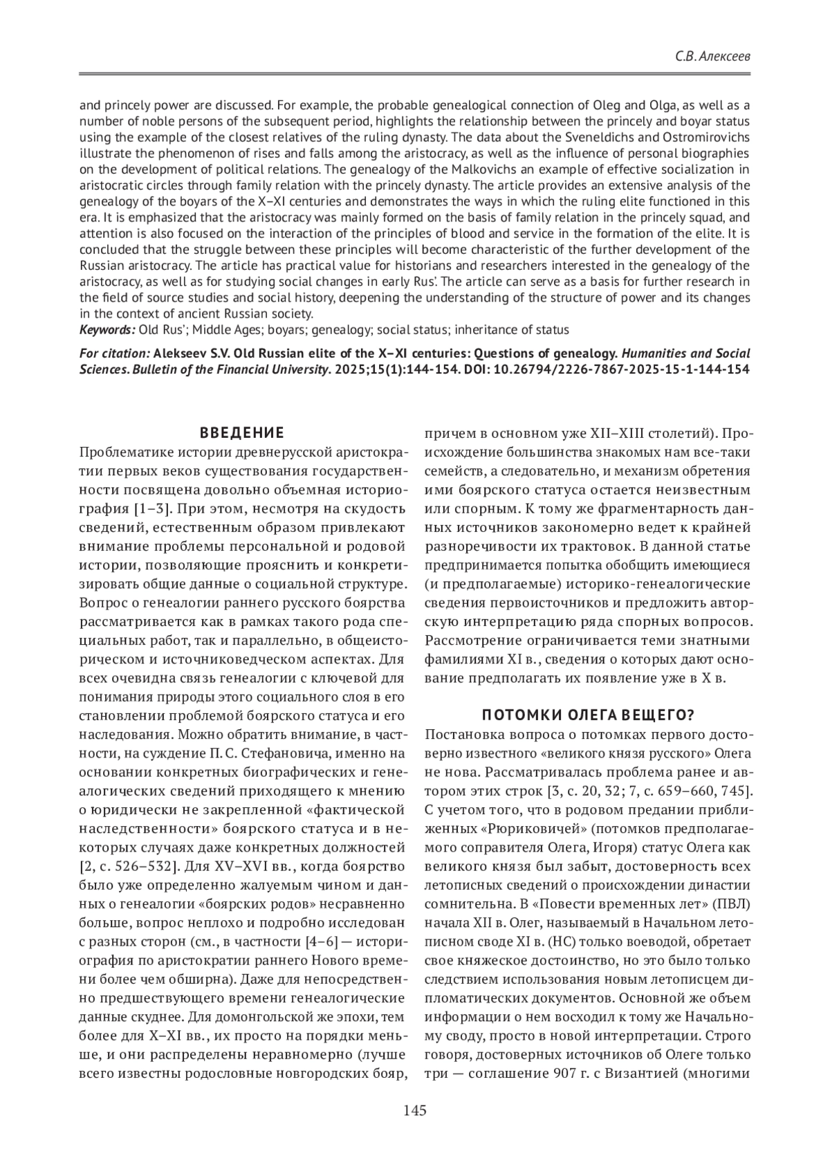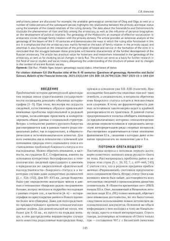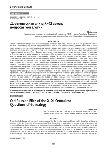АЛЕКСЕЕВ С. В. ДРЕВНЕРУССКАЯ ЭЛИТА X-XI ВЕКОВ: ВОПРОСЫ ГЕНЕАЛОГИИ // ГУМАНИТАРНЫЕ НАУКИ. ВЕСТНИК ФИНАНСОВОГО УНИВЕРСИТЕТА. 2025. ТОМ 15, № 1