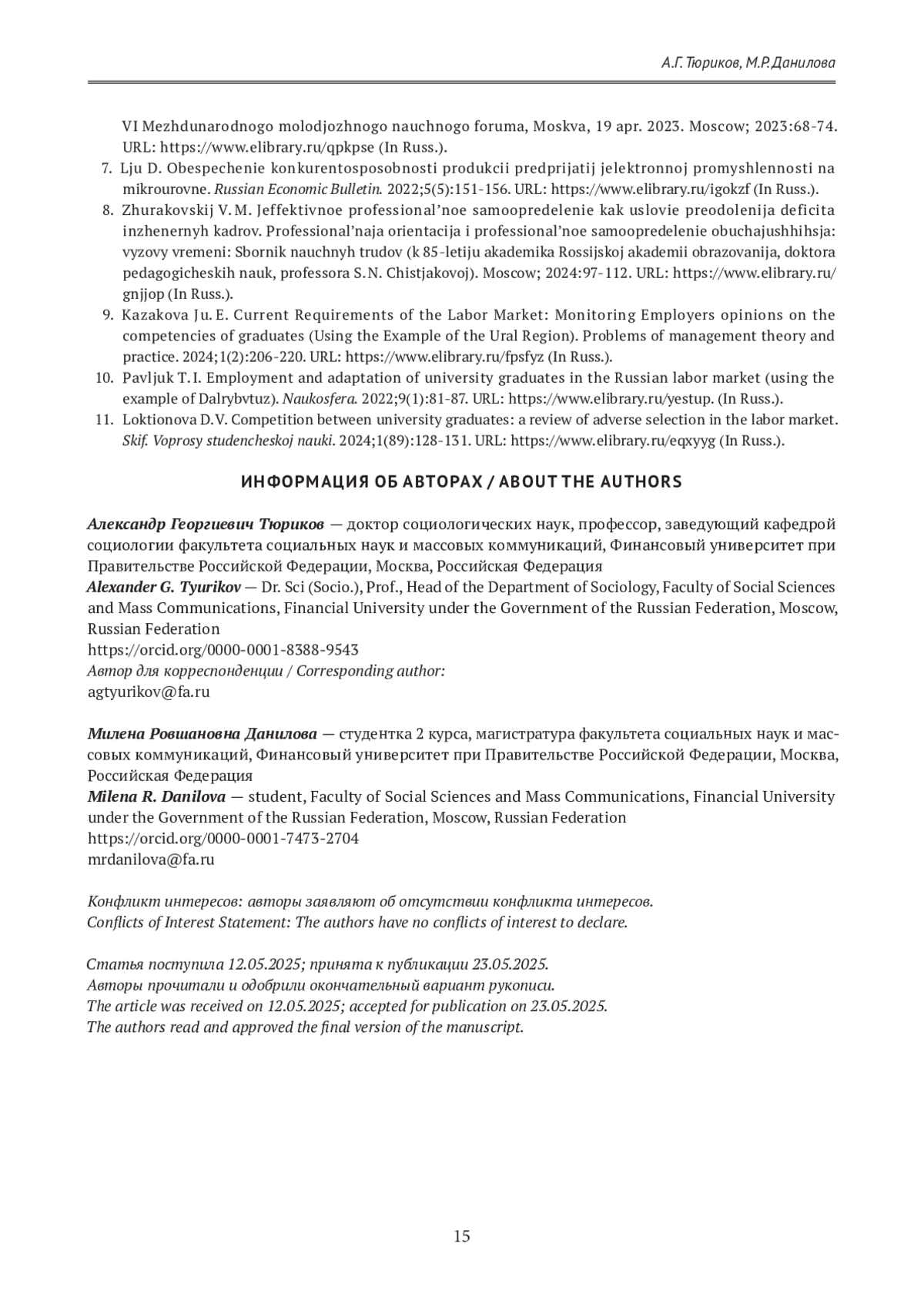 11. Локтионова Д.В. Конкуренция между выпускниками Вузов: обзор неблагоприятного отбора на рынке труда. Скиф. Вопросы студенческой науки. 2024;1(89):128-131. URL: https://www.elibrary.ru/eqxyyg