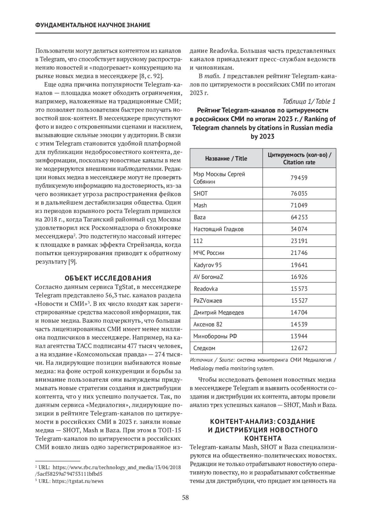 Тема исследования. Авторы рассматривают мессенджер Telegram как площадку дистрибуции новостного контента. Взрывной рост Telegram как коммуникационно-новостной платформы пришелся на 2022 г. в связи с кардинальными изменениями в мировом дискурсе и трансформацией российского медиаполя, и сегодня рост подписчиков продолжается.