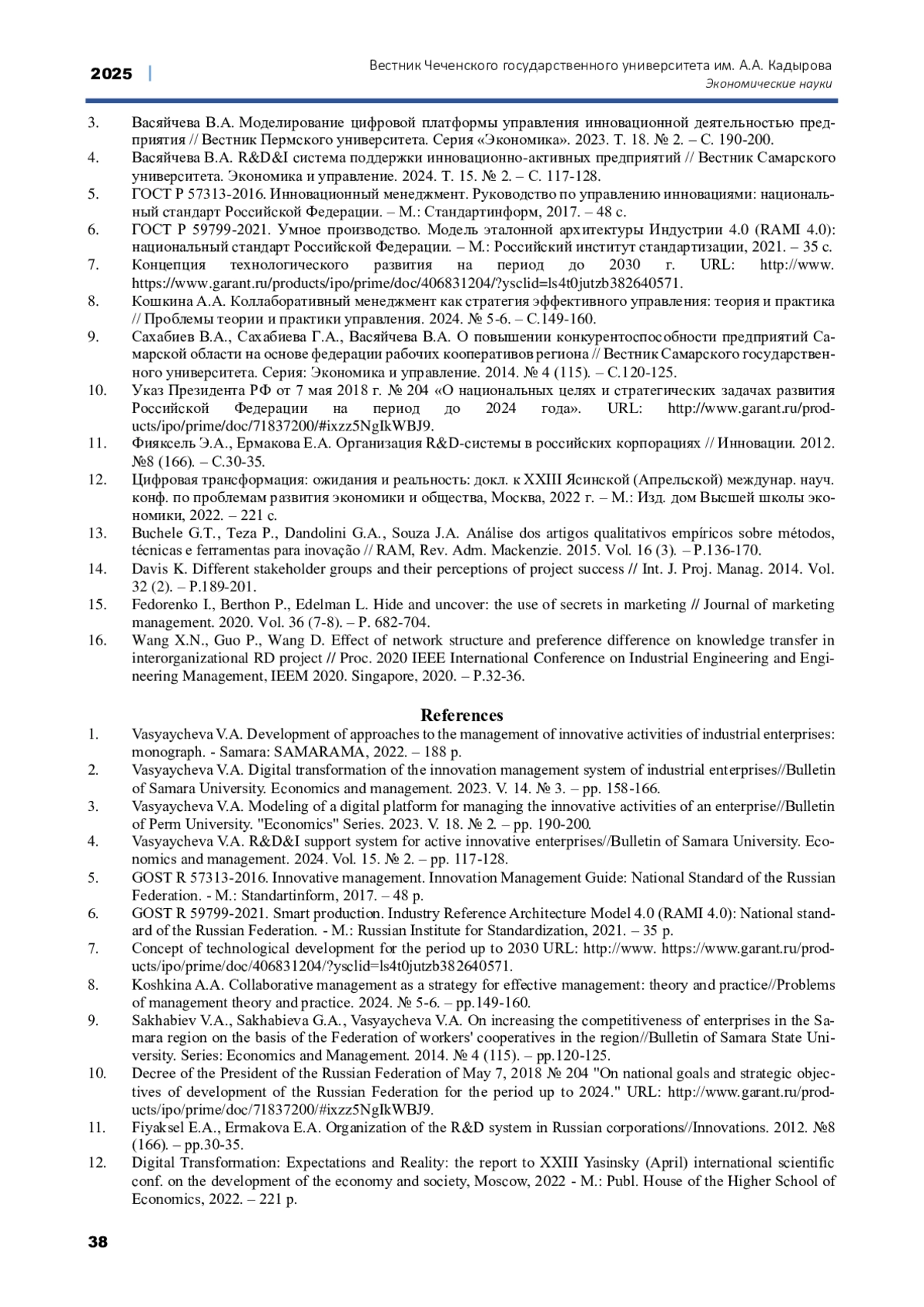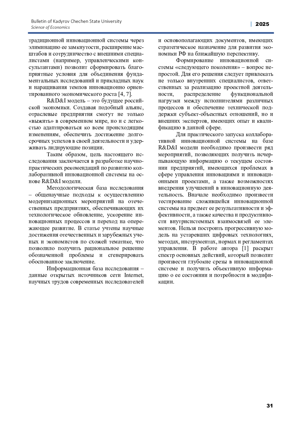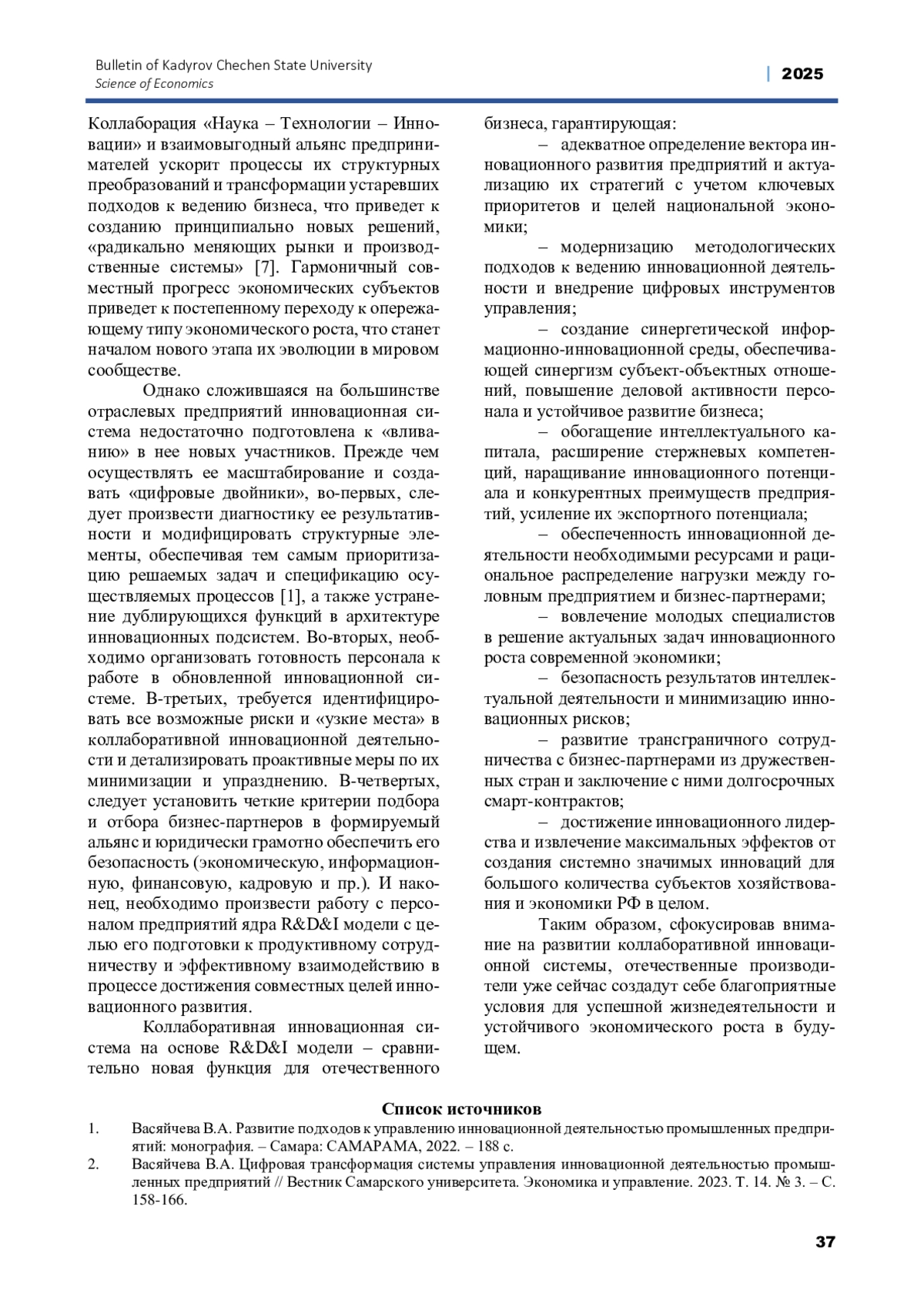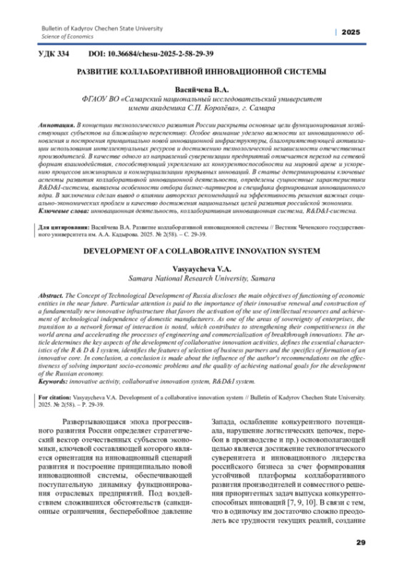ВАСЯЙЧЕВА В. А. РАЗВИТИЕ КОЛЛАБОРАТИВНОЙ ИННОВАЦИОННОЙ СИСТЕМЫ // ВЕСТНИК ЧЕЧЕНСКОГО ГОСУДАРСТВЕННОГО УНИВЕРСИТЕТА ИМ. А. А. КАДЫРОВА. 2025. № 2 (58)