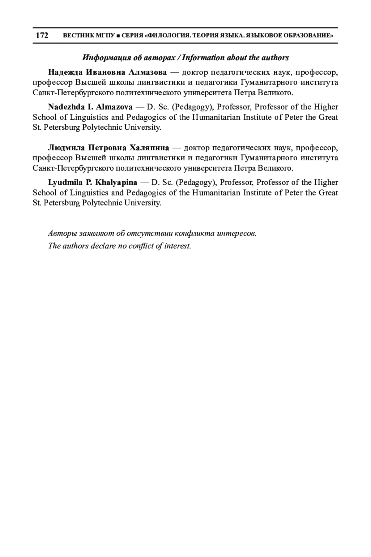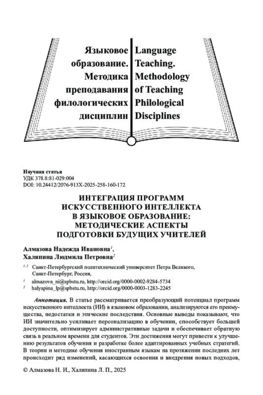 10. Сысоев, П. В., Поляков, О. Г., & Евстигнеев, М. Н. (2023). Обучение иностранному языку на основе технологий искусственного интеллекта. Коллективная монография. Под науч. ред. П. В. Сысоева. Державинский. EDN: XLDYWN