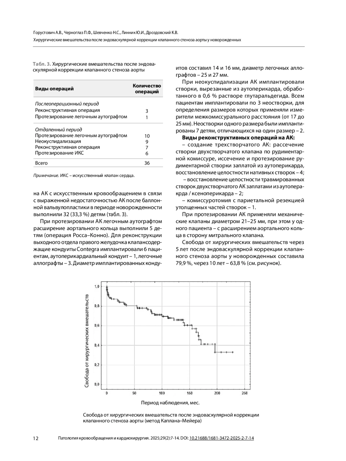 Заключение. Свобода от хирургических вмешательств через 5 лет после эндоваскулярной коррекции клапанного стеноза аорты у новорожденных составила 79,9 %, через 10 лет – 63,8 %.