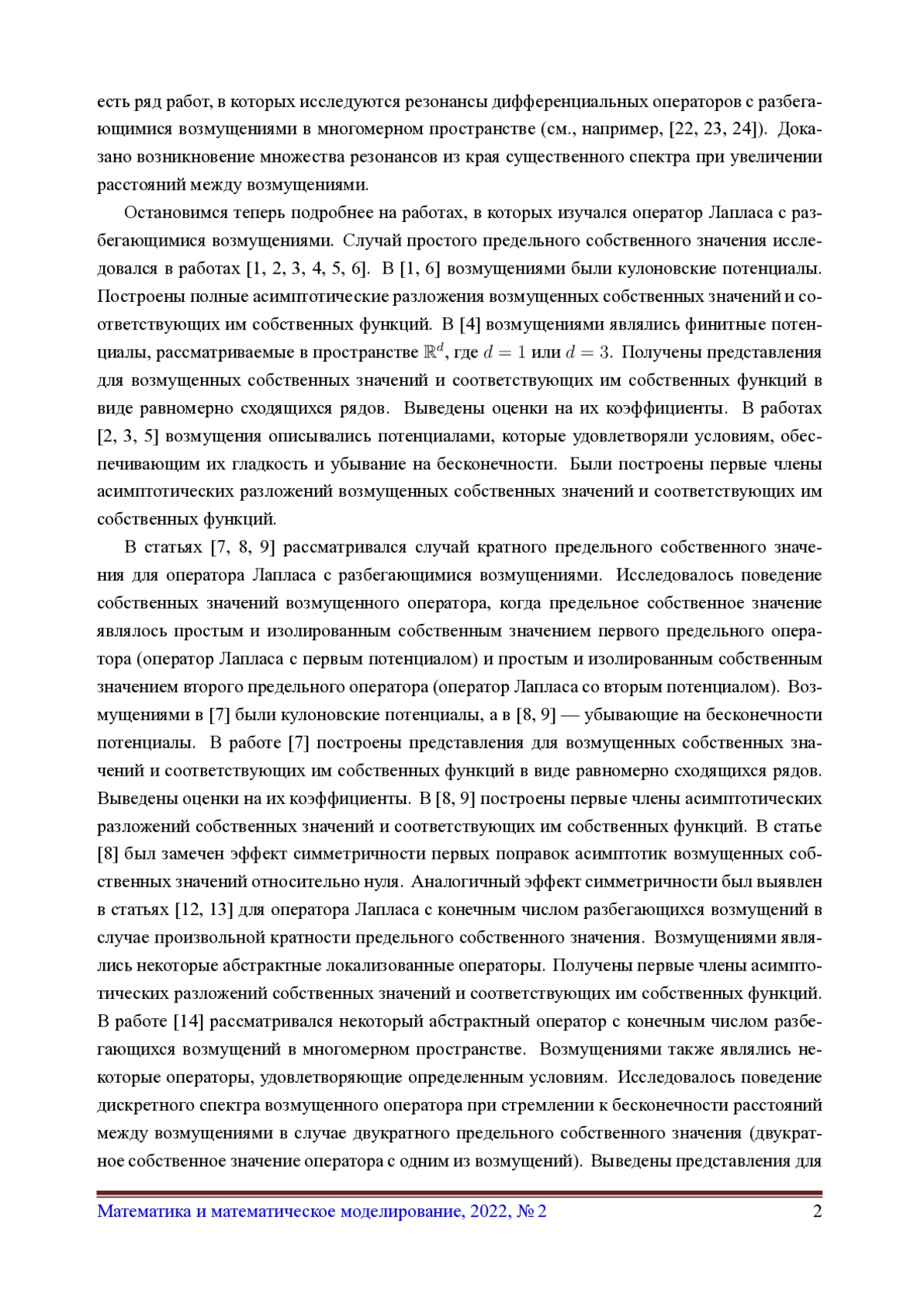 24. Borisov D.I., Golovina A.M. On finitely many resonances emerging under distant perturbations in multi-dimensional cylinders //j. of Mathematical Analysis and Applications. 2021. Vol. 496. No. 2. Art. no. 124809. DOI: 10.1016/j.jmaa.2020.124809 EDN: KIYSML