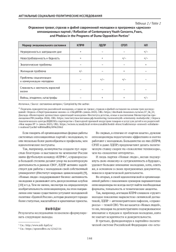 Статья посвящена компаративному исследованию идеологической и организационной работы парламентских оппозиционных политических партий с молодежным электоратом. Несмотря на то, что в последние годы степень оппозиционности молодого поколения существенно снизилась, тем не менее этот социальный слой до сих пор в значительной мере является «фрондирующим» и лишь «относительно системным». Также нынешнее поколение «зуммеров» уже в ближайшее время вступит в период профессиональной и карьерной зрелости и станет «ядром» национального электората. Осознавая это, политические партии России заранее начинают выстраивать диалог с молодежью, привлекать ее к участию в рамках своих проектов, совершенствовать свои идеологические и мировоззренческие позиции с учетом запроса «юной поросли». При этом хотя основную часть социально активной молодежи «окормляют» партия «Единая Россия» и другие провластные организации, оппозиционные парламентские партии также стремятся «застолбить» за собой хотя бы частично поддержку молодежной аудитории. Однако пока это не слишком удается в силу ряда причин.