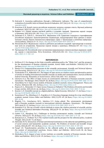 33. Кочетков Д. М. Белый список российских журналов: вопросы, ждущие ответа. Научный редактор и издатель. 2022;7(2):185-190. DOI: 10.24069/SEP-22-48