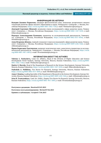 25. Мазов Н. А., Гуреев В. Н., Ильичёва И. Ю. Представленность российской университетской научной периодики в международных и отечественных системах научно-технической информации. Вестник Российской академии наук. 2024;94(9):839-852. DOI: 10.31857/S0869587324090079