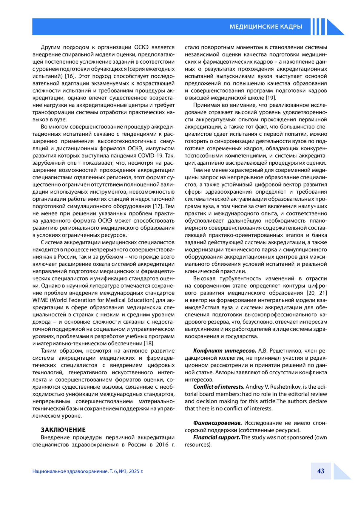 20. Литвинова Т.М., Галузина И.И., Засова Л.B., Присяжная Н.В. Медицинское образование в России: векторы перезагрузки в условиях пандемии. Национальное здравоохранение. 2021; 2(1): 12-20. DOI: 10.47093/2713-069X.2021.2.1.12-20