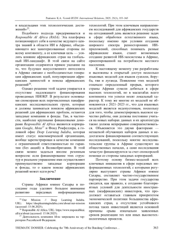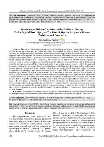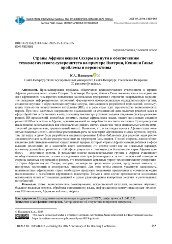 Статья: СТРАНЫ АФРИКИ ЮЖНЕЕ САХАРЫ НА ПУТИ К ОБЕСПЕЧЕНИЮ ТЕХНОЛОГИЧЕСКОГО СУВЕРЕНИТЕТА НА ПРИМЕРЕ НИГЕРИИ, КЕНИИ И ГАНЫ: ПРОБЛЕМЫ И ПЕРСПЕКТИВЫ (2025)