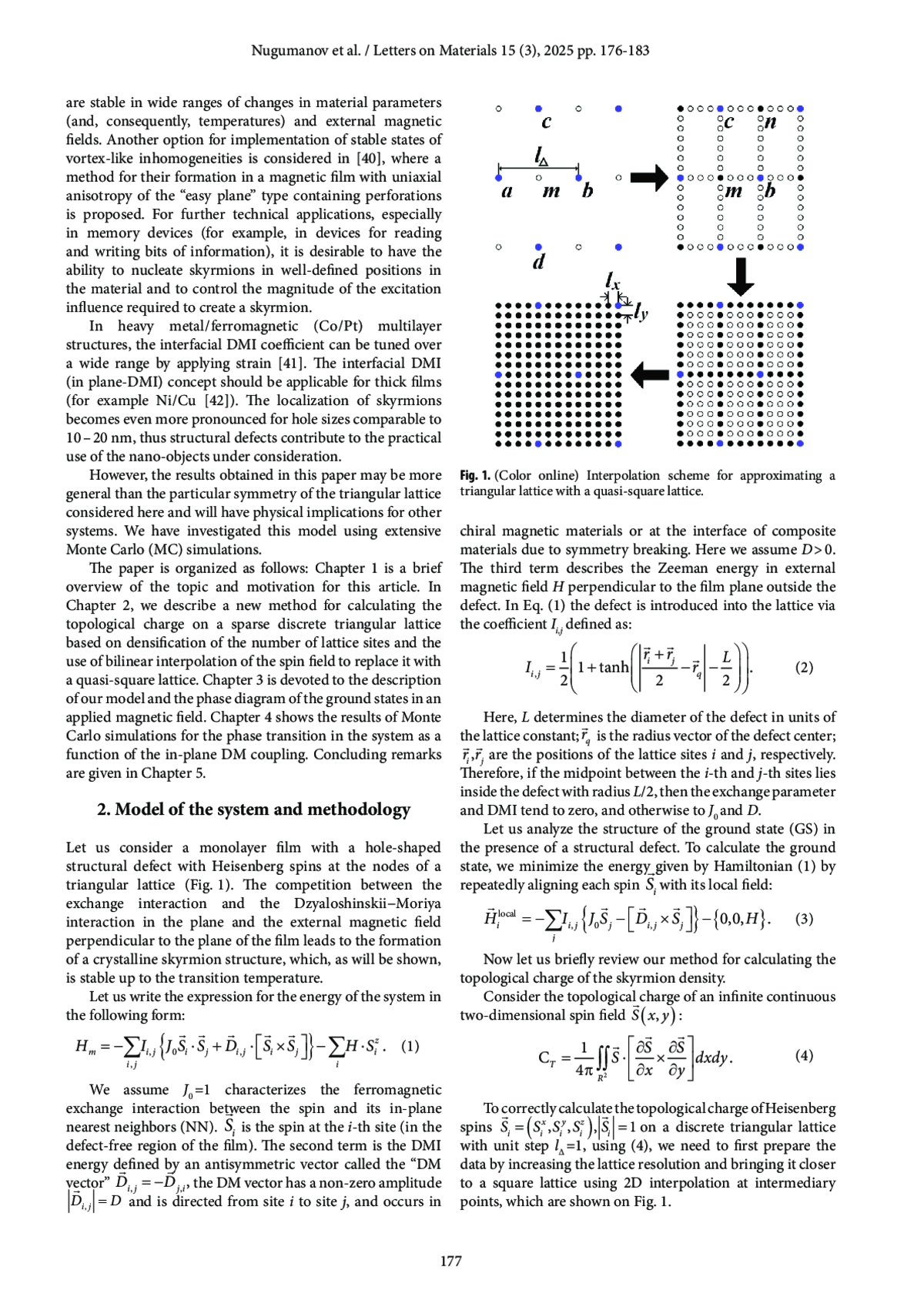Ключевые фразы: structural defect, skyrmion, skyrmion lattice, monte carlo simulation, dzyaloshinskii−moriya interaction