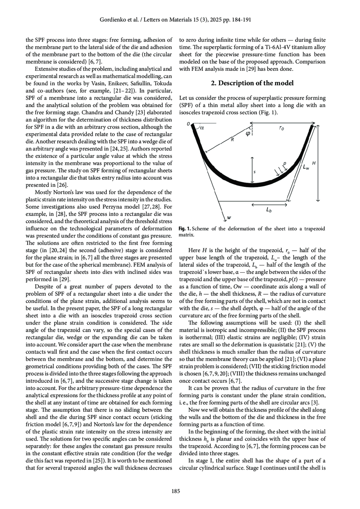 22. R. A. Vasin, F. U. Enikeev, M. Tokuda, R. V. Safiullin, Mathematical modelling of the superplastic forming of a long rectangular sheet, Int. Journal of Non-Linear Mech. 38 (2003) 799 - 807. DOI: 10.1016/S0020-7462(01)00134-2