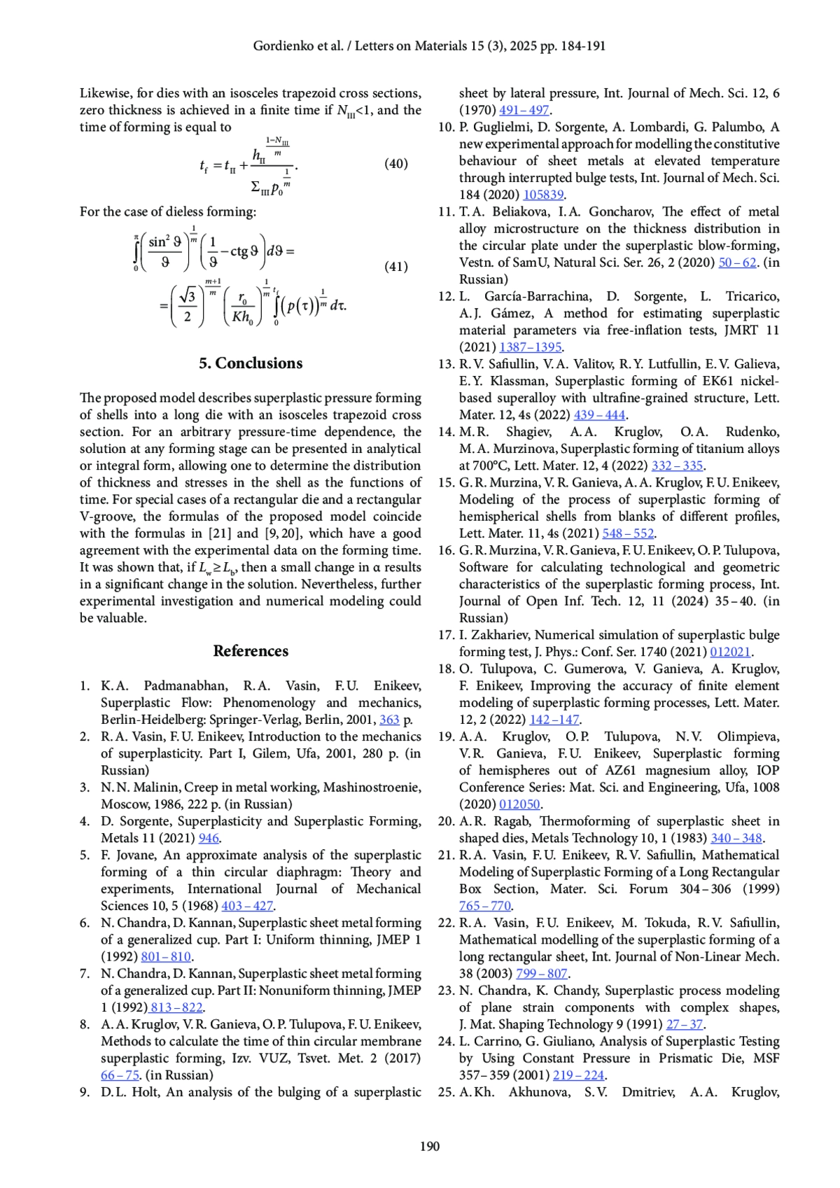 21. R. A. Vasin, F. U. Enikeev, R. V. Safiullin, Mathematical Modeling of Superplastic Forming of a Long Rectangular Box Section, Mater. Sci. Forum 304 - 306 (1999) 765 - 770. DOI: 10.4028/www.scientific.net/MSF.304-306.765
