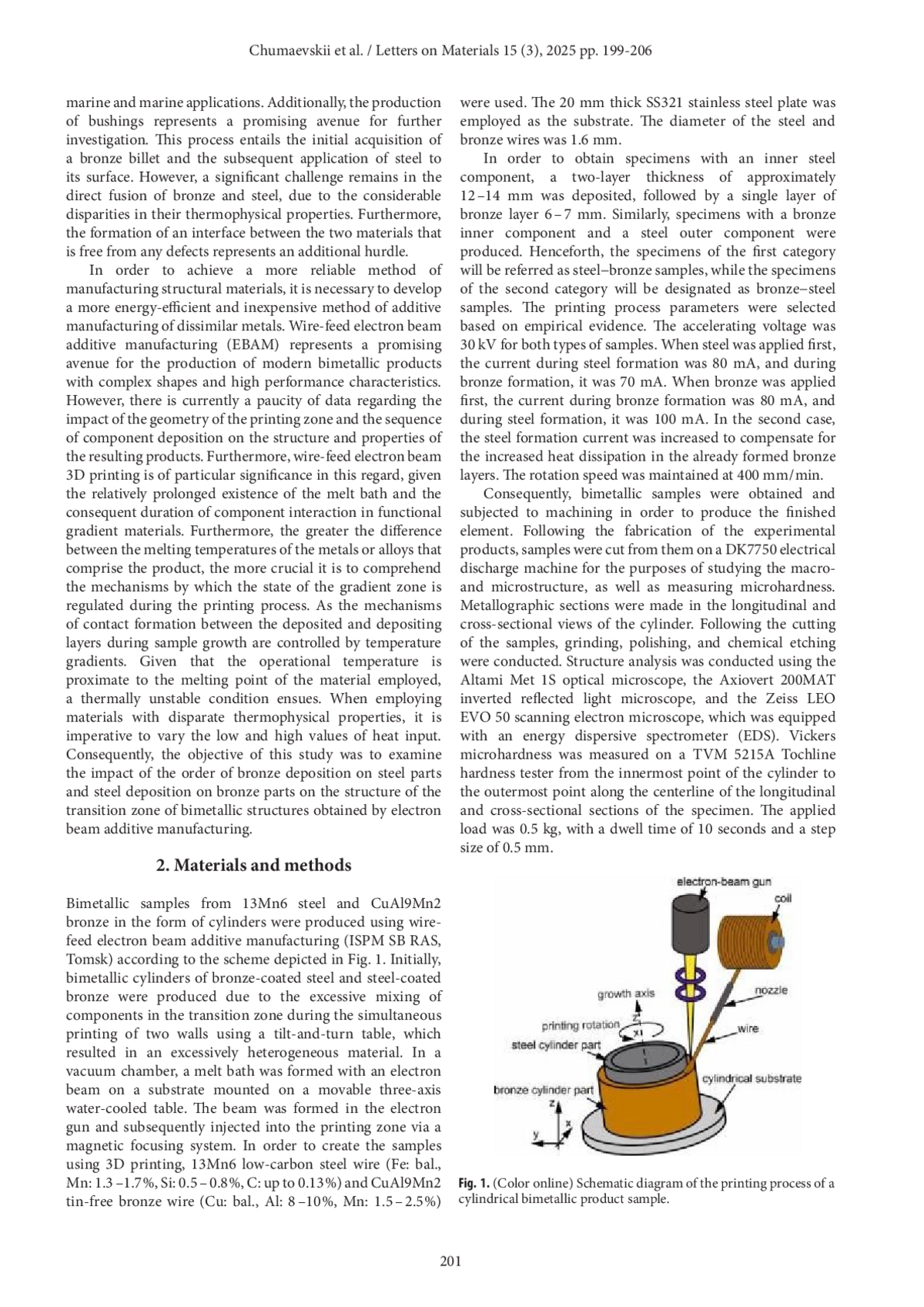 Ключевые фразы: additive manufacturing, aluminum bronze, steel, transition zone, composite materials, cylindrical bimetals