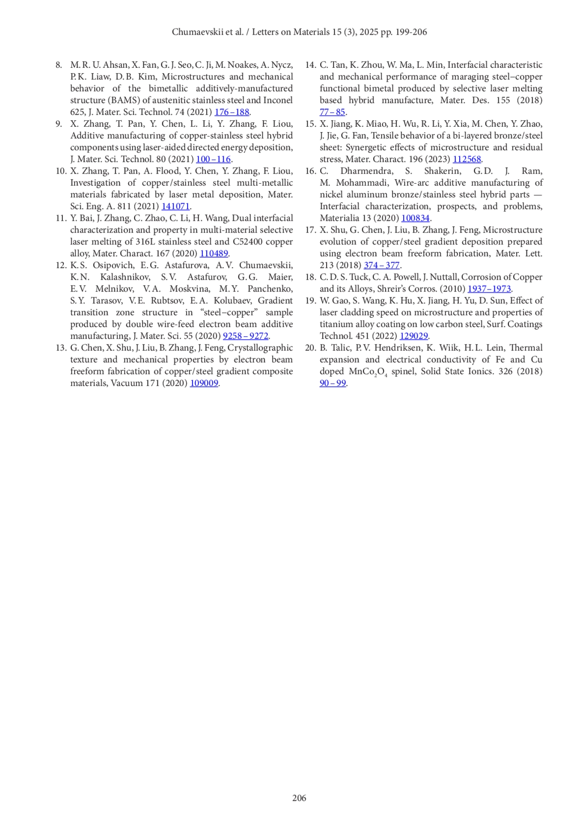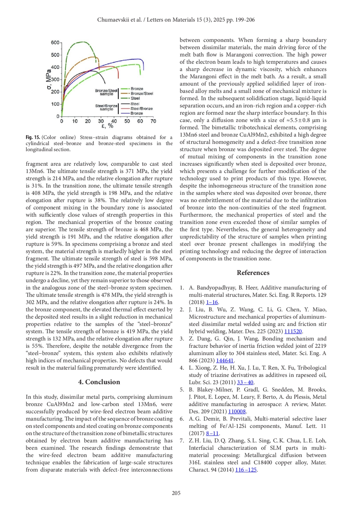 ЧУМАЕВСКИЙ А. В., НИКОЛАЕВА А. В., СЕМЕНЧУК В. М., ОСИПОВИЧ К. C., КОЛУБАЕВ Е. А., GURIANOV D.A. EFFECT OF THE ORDER OF COMPONENT DEPOSITION ON THE STRUCTURE OF THE TRANSITION ZONE OF BIMETALLIC STRUCTURES PRODUCED USING HIGH-PERFORMANCE ELECTRON BEAM ADDITIVE MANUFACTURING // ПИСЬМА О МАТЕРИАЛАХ. 2025. № 3 (59), ТОМ 15