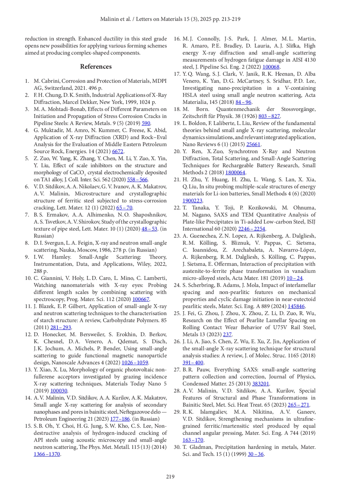 14. А. В. Малинин, В. Д. Ситдиков, А. А. Курилов, А. К. Макатров, Малоугловое рентгеновское рассеяние для анализа вторичных нанофаз и пор в бейнитной стали, Нефтегазовое дело 21 (2023) 177 -186. DOI: 10.17122/ngdelo-2023-3-177-186