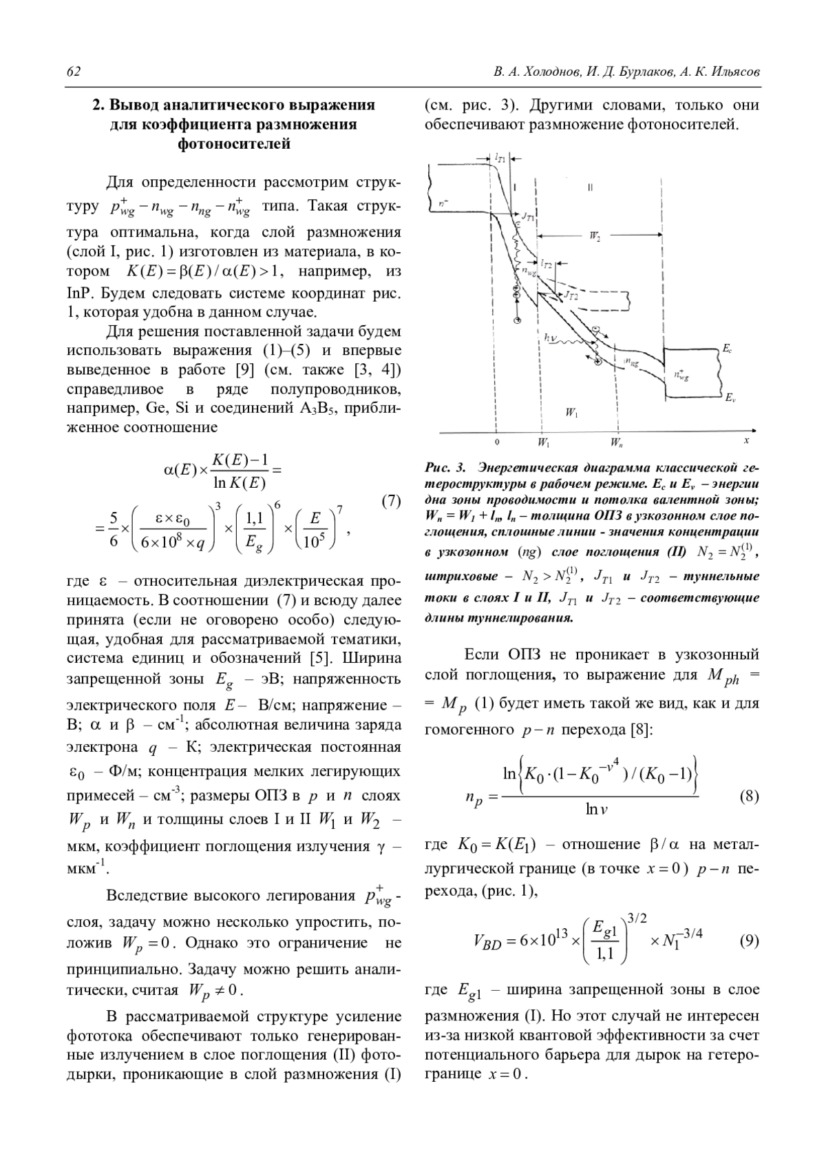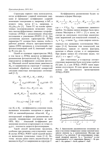 Холоднов В. А., Бурлаков И. Д., Ильясов А. К. Соотношение Миллера для коэффициента умножения фотоносителей в классических лавинных гетерофотодиодах с разделенными областями поглощения и умножения 60