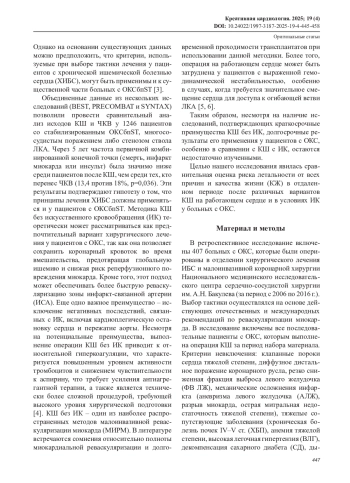 Статья: Летальность и качество жизни в отдаленном периоде после коронарного шунтирования у больных с острым коронарным синдромом (2025)